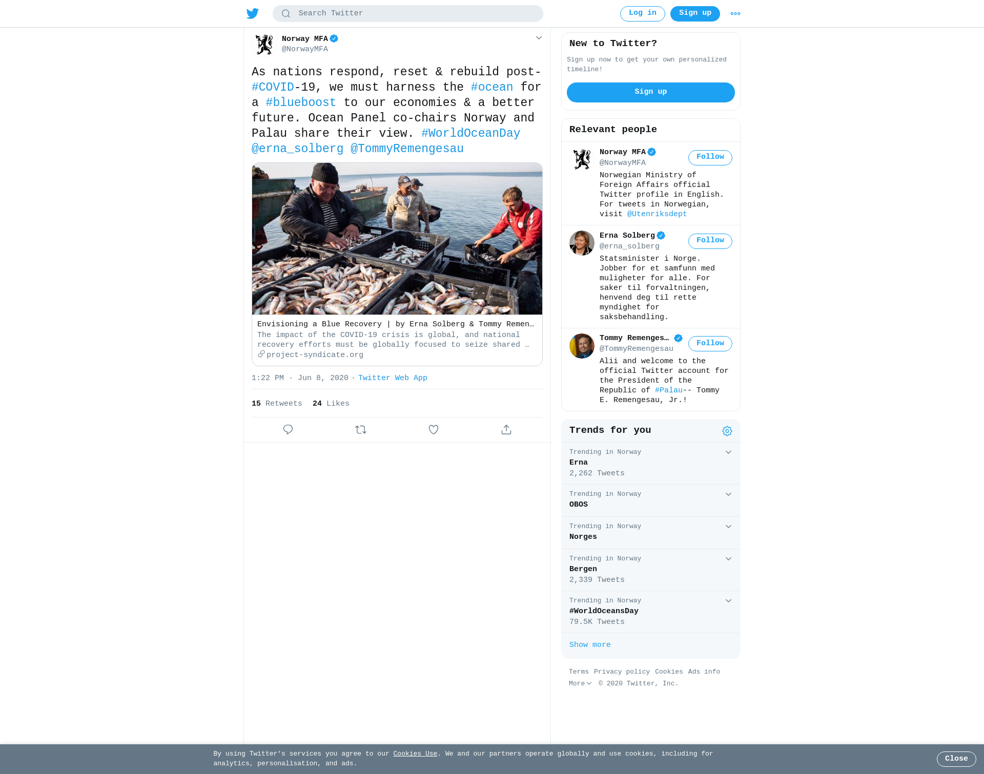 Envisioning a Blue Recovery | by Erna Solberg & Tommy Remengesau Jr. - Project Syndicate