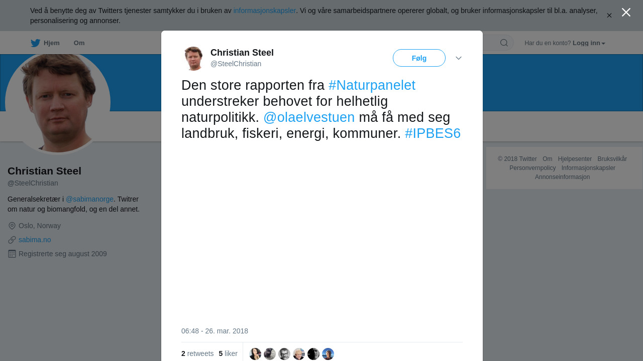 RT @SteelChristian: Den store rapporten fra #Naturpanelet understreker behovet for helhetlig naturpolitikk. @olaelvestuen må få med seg… https://t.co/kXMF7H0hFi