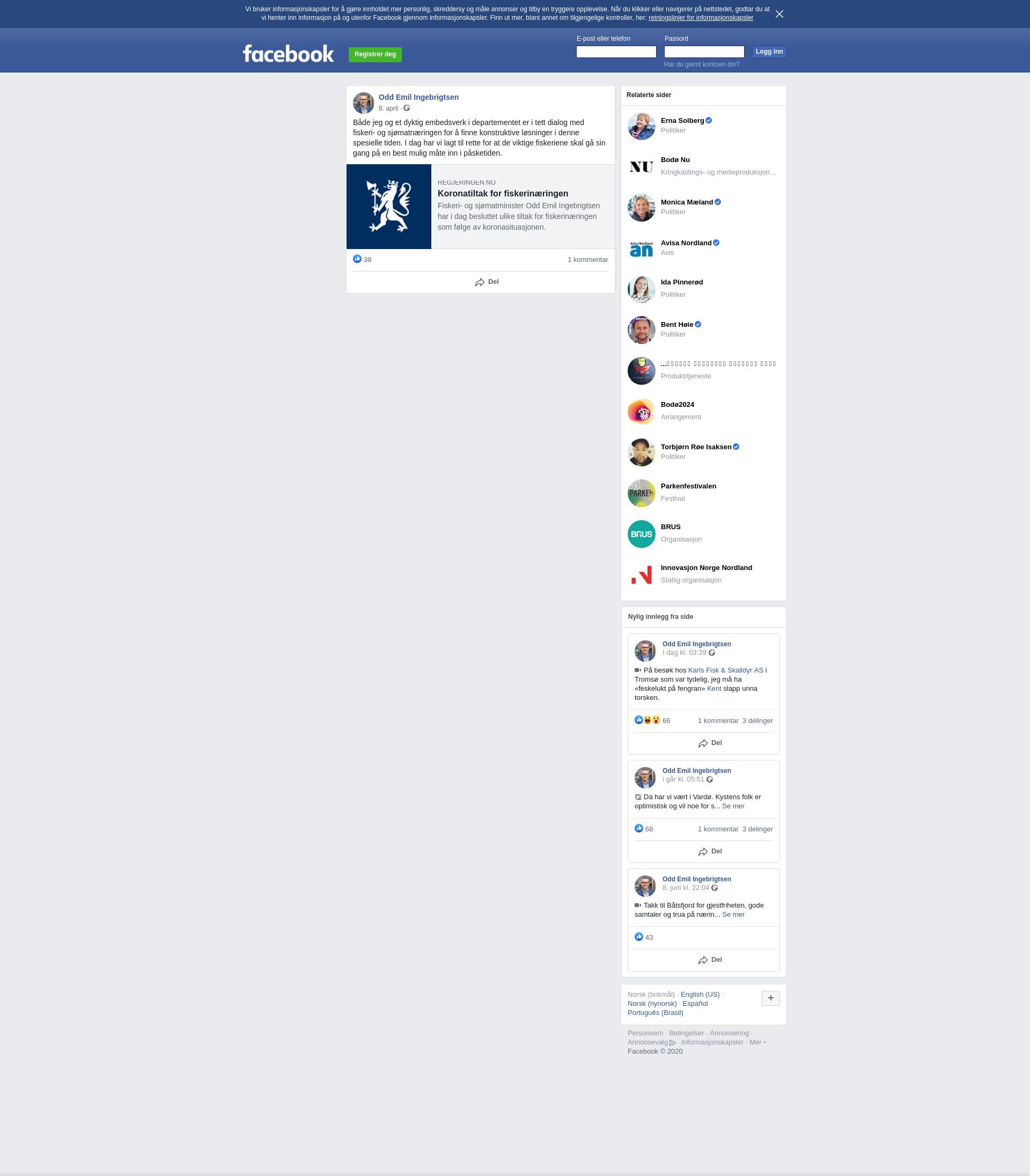 Både jeg og et dyktig embedsverk i departementet er i tett dialog med fiskeri- og sjømatnæringen for å finne konstruktive løsninger i denne spesielle tiden. I dag har vi lagt til rette for at de viktige fiskeriene skal gå sin gang på en best mulig måte inn i påsketiden.