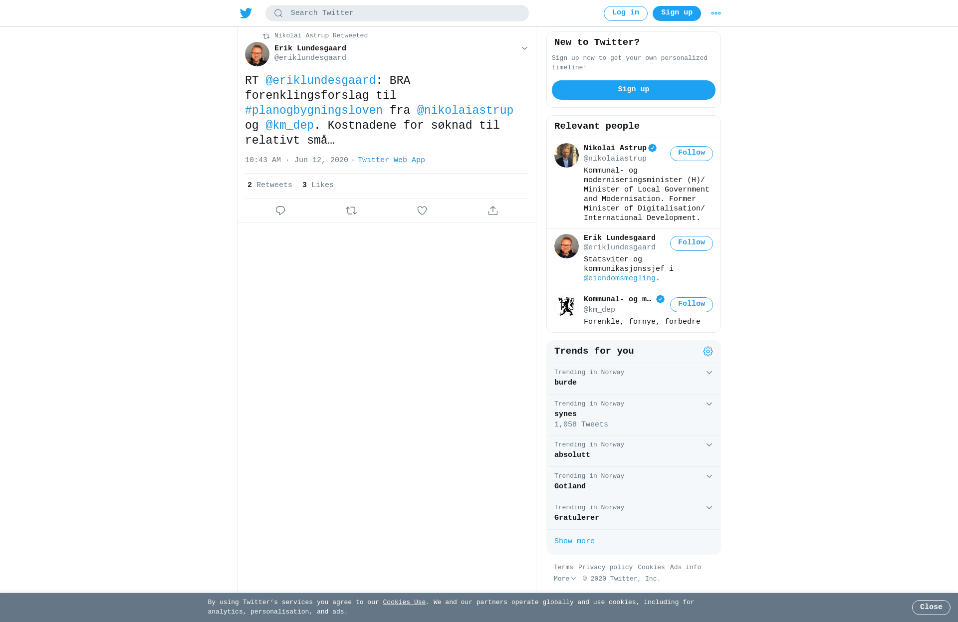 RT @eriklundesgaard: BRA forenklingsforslag til #planogbygningsloven fra @nikolaiastrup og @km_dep. Kostnadene for søknad til relativt små bygg og påbygg kan i dag være helt i utakt med størrelsen på tiltaket.