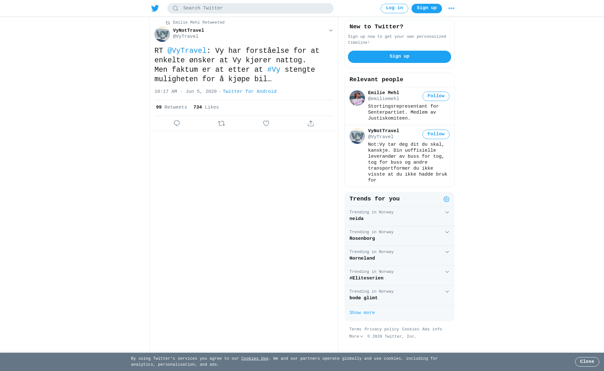 RT @VyTravel: Vy har forståelse for at enkelte ønsker at Vy kjører nattog. Men faktum er at etter at #Vy stengte muligheten for å kjøpe bil…