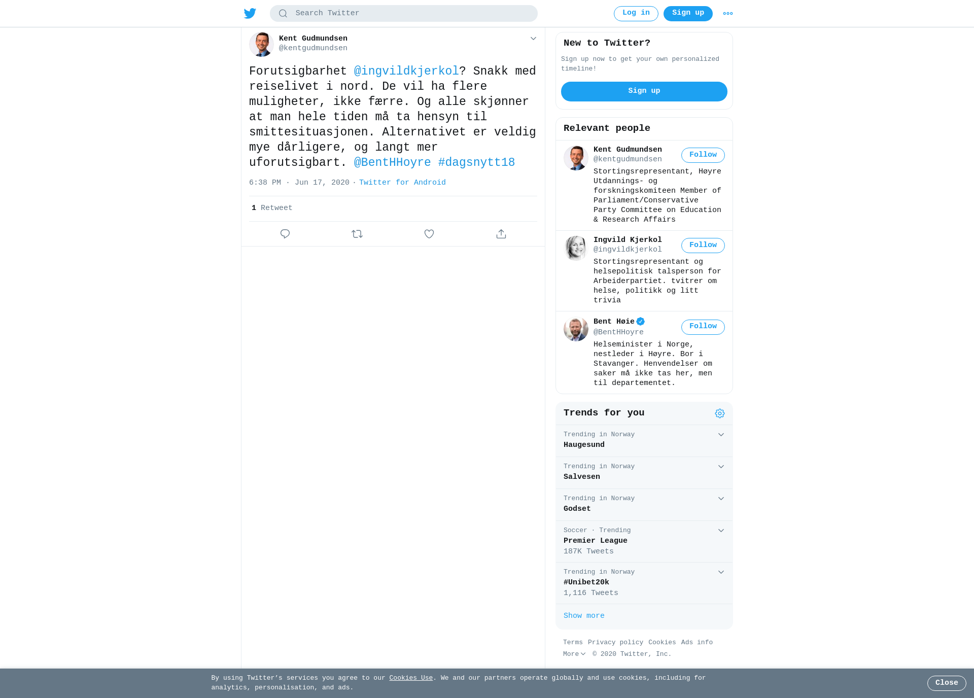 Forutsigbarhet @ingvildkjerkol? Snakk med reiselivet i nord. De vil ha flere muligheter, ikke færre. Og alle skjønner at man hele tiden må ta hensyn til smittesituasjonen. Alternativet er veldig mye dårligere, og langt mer uforutsigbart. @BentHHoyre #dagsnytt18