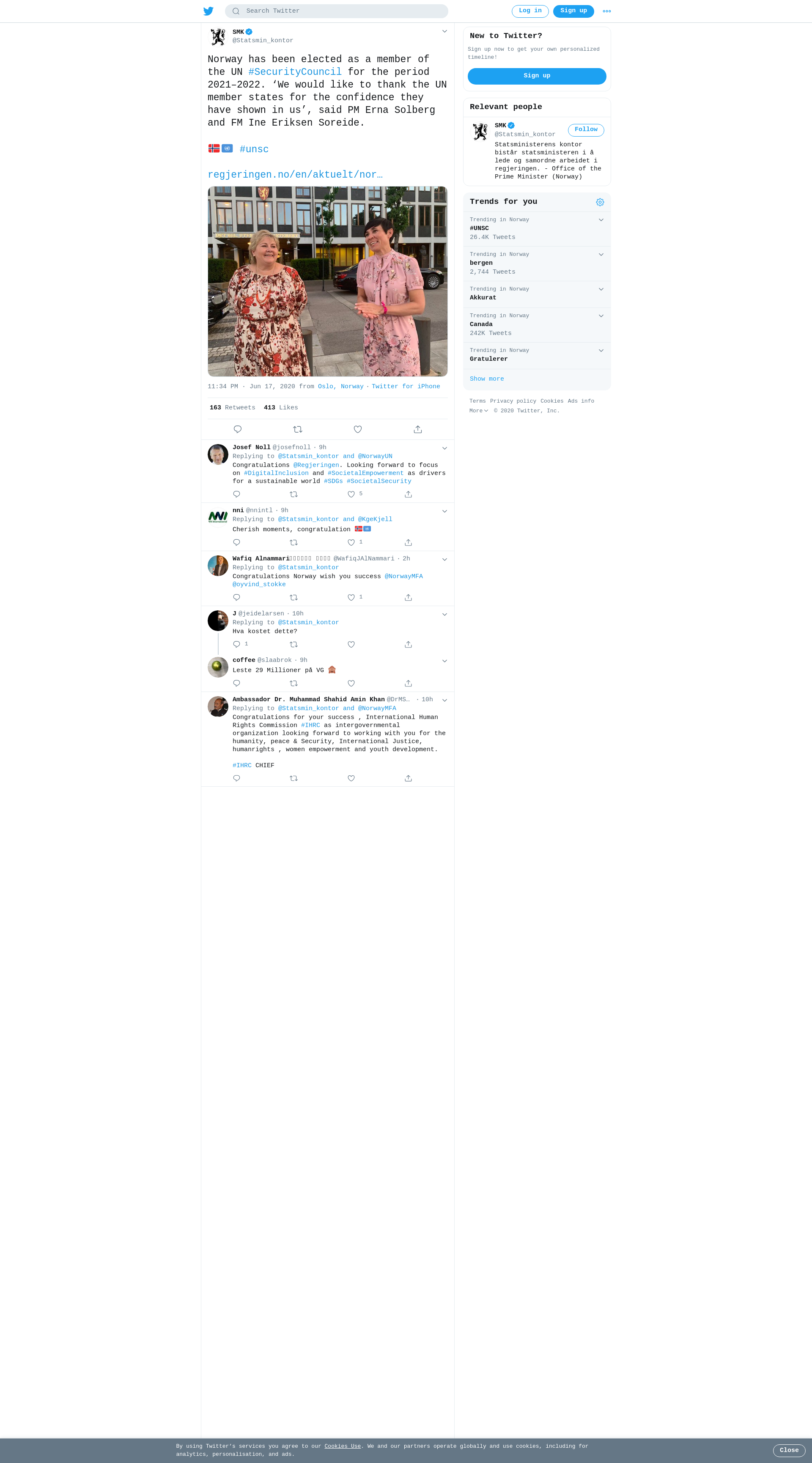 Today, Norway was elected as a member of the UN Security Council for the period 2021–2022. ‘We would like to thank the UN member states for the confidence they have shown in us. The world needs more international cooperation to promote peace and secur...