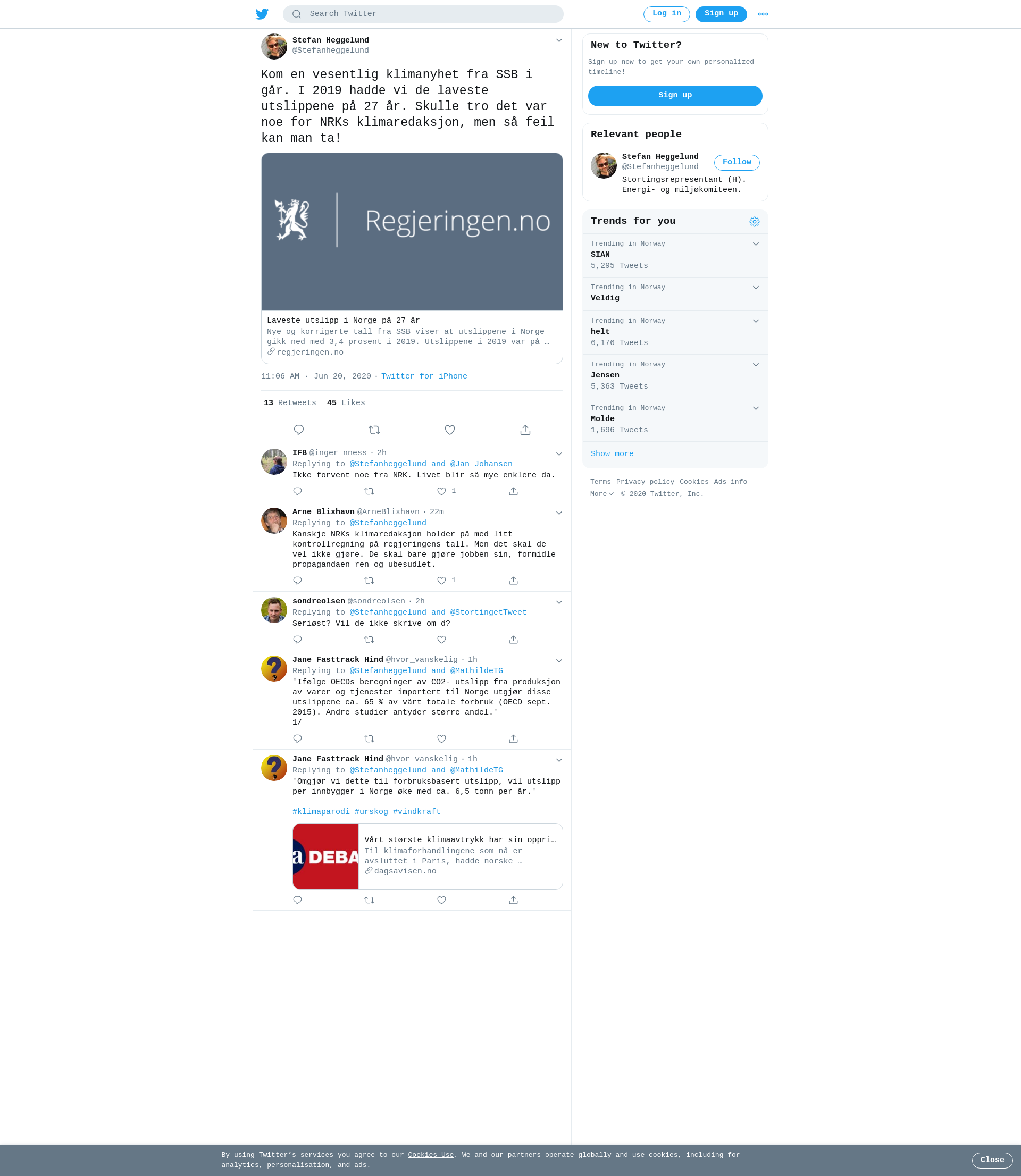 Laveste utslipp i Norge på 27 år
