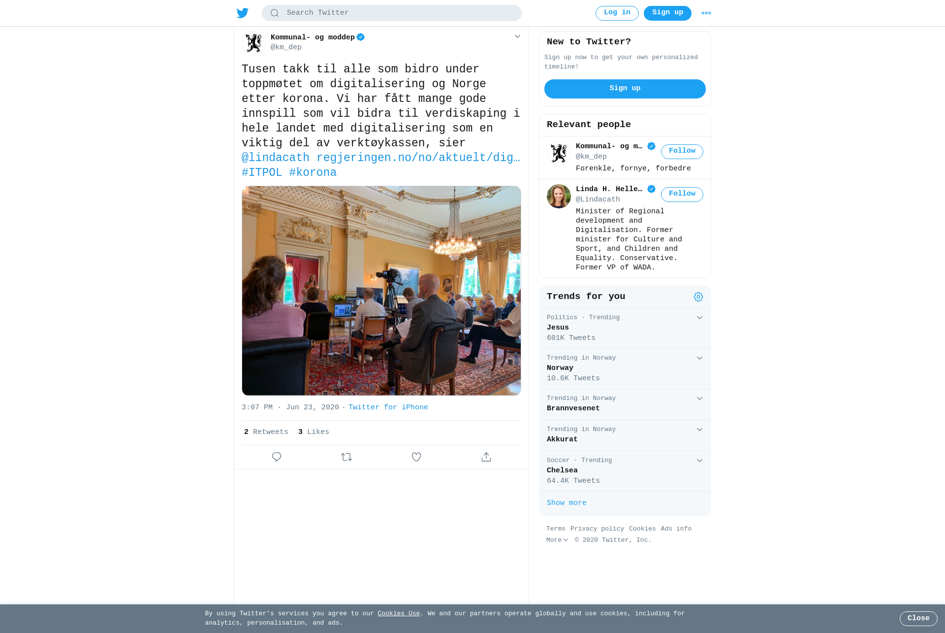 Tusen takk til alle som bidro under toppmøtet om digitalisering og Norge etter korona. Vi har fått mange gode innspill som vil bidra til verdiskaping i hele landet med digitalisering som en viktig del av verktøykassen, sier @lindacath https://t.co/jroUeQmjVz #ITPOL #korona https://t.co/o8BCyTUg79
