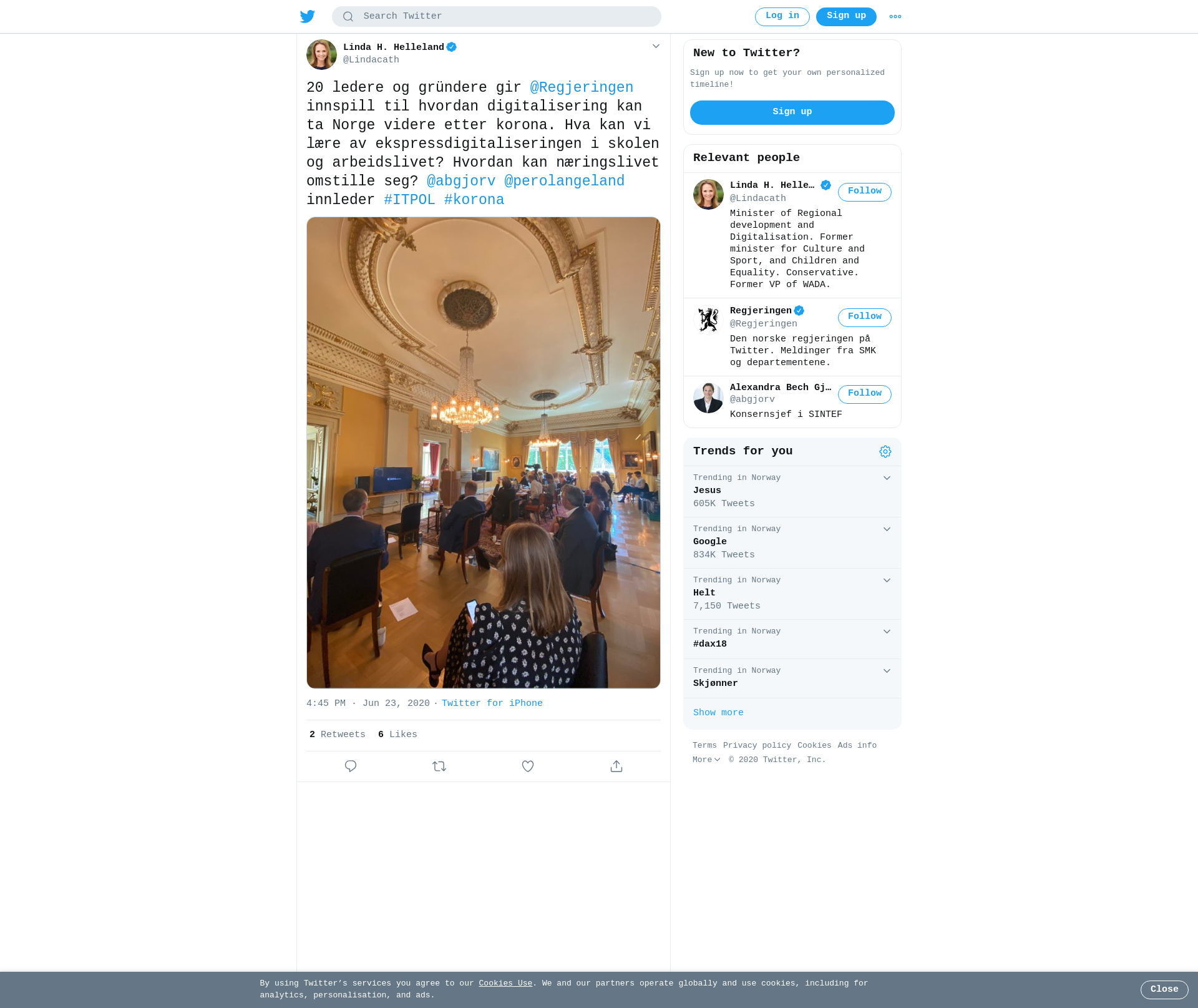 20 ledere og gründere gir @Regjeringen innspill til hvordan digitalisering kan ta Norge videre etter korona. Hva kan vi lære av ekspressdigitaliseringen i skolen og arbeidslivet? Hvordan kan næringslivet omstille seg? @abgjorv @perolangeland innleder #ITPOL #korona https://t.co/uRZEoUMFpE