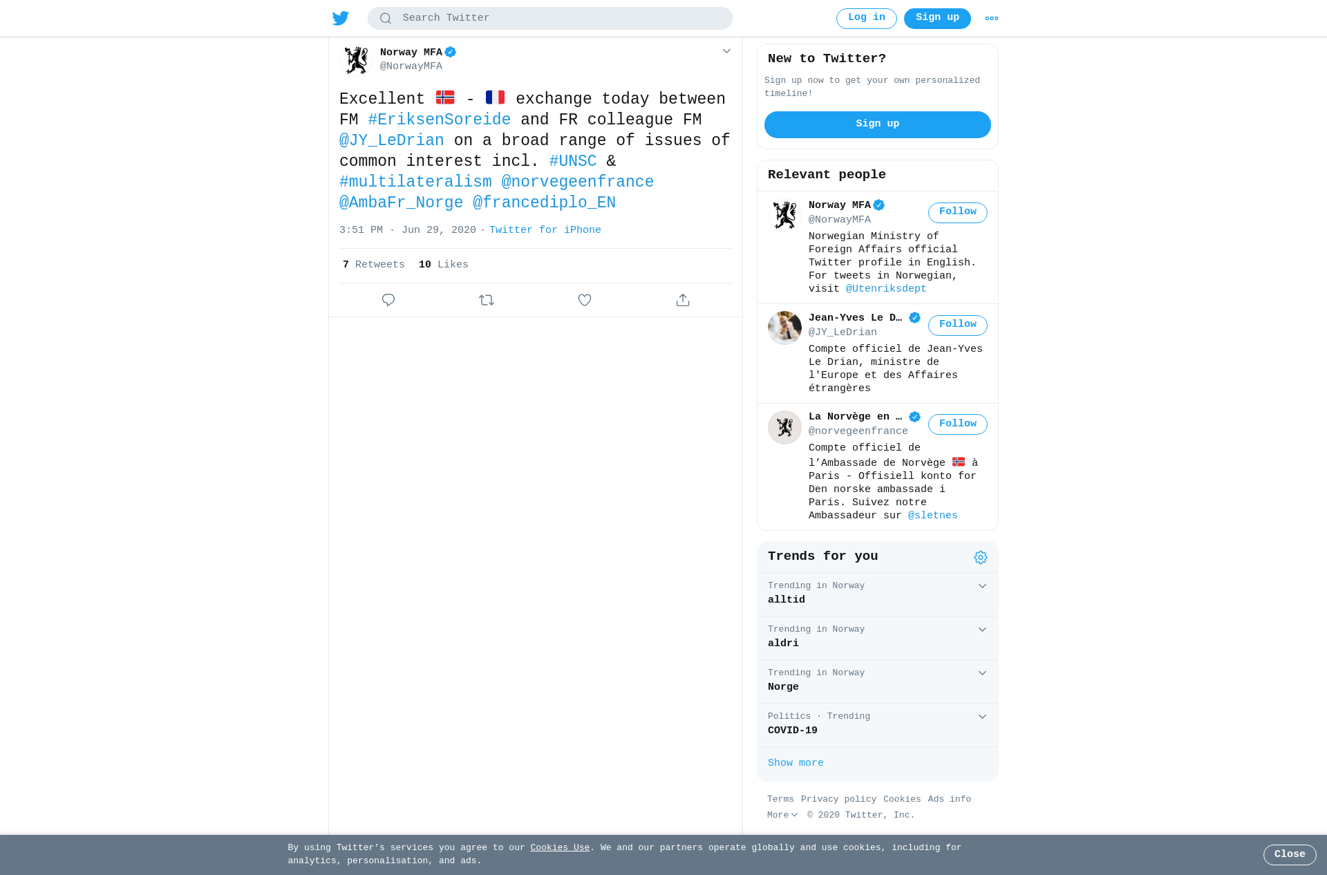Excellent 🇳🇴 - 🇫🇷 exchange today between FM #EriksenSoreide and FR colleague FM @JY_LeDrian on a broad range of issues of common interest incl. #UNSC & #multilateralism @norvegeenfrance @AmbaFr_Norge @francediplo_EN