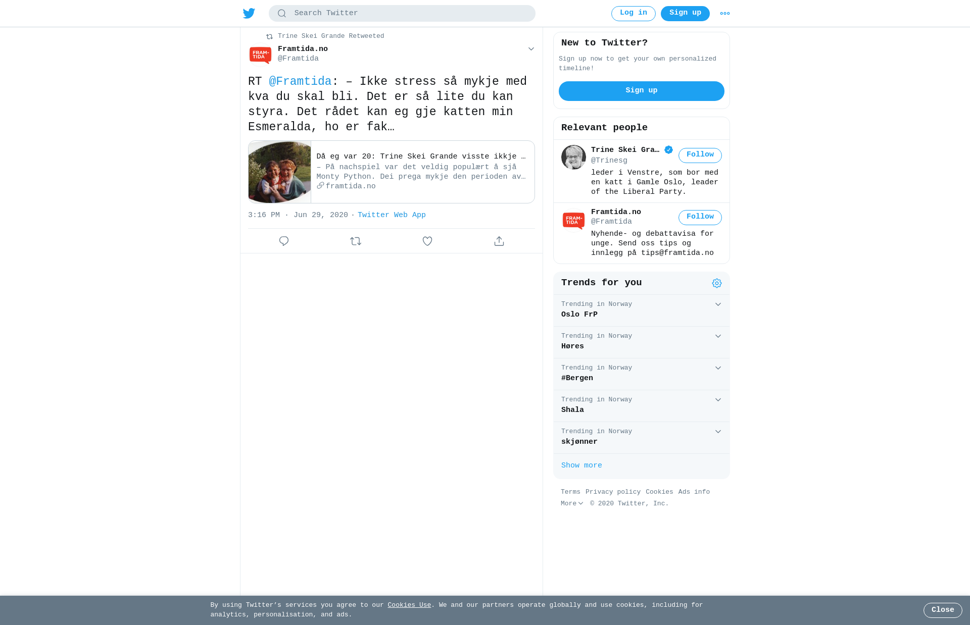 RT @Framtida: – Ikke stress så mykje med kva du skal bli. Det er så lite du kan styra. Det rådet kan eg gje katten min Esmeralda, ho er faktisk 20 no, seier @Trinesg til @Framtida https://t.co/TwqxZtoWnF