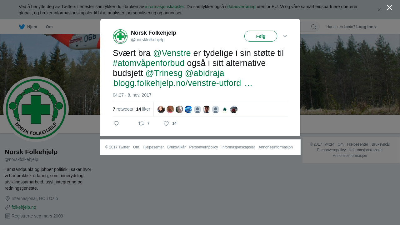 RT @norskfolkehjelp: Svært bra @Venstre er tydelige i sin støtte til #atomvåpenforbud også i sitt alternative budsjett @Trinesg @abidraja https://t.co/a1c7Q0JCmQ
