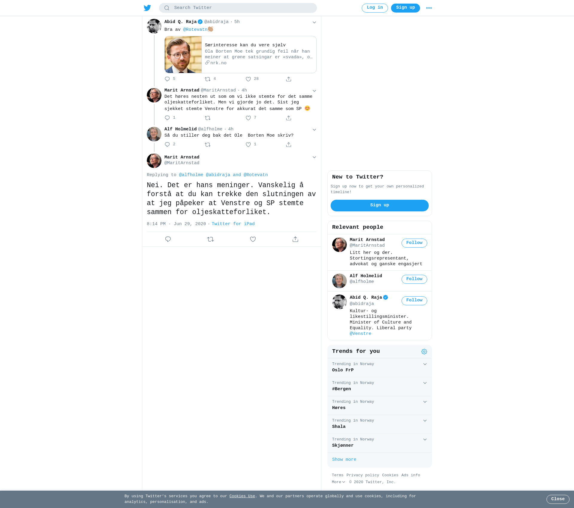 @alfholme @abidraja @Rotevatn Nei. Det er hans meninger. Vanskelig å forstå at du kan trekke den slutningen av at jeg påpeker at Venstre og SP stemte sammen for oljeskatteforliket.