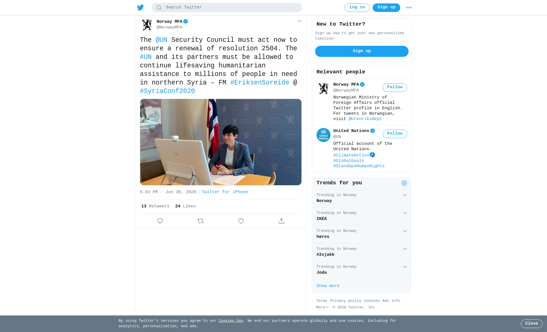 The @UN Security Council must act now to ensure a renewal of resolution 2504. The #UN and its partners must be allowed to continue lifesaving humanitarian assistance to millions of people in need in northern Syria – FM #EriksenSoreide @ #SyriaConf2020 https://t.co/CloVdoGnEZ
