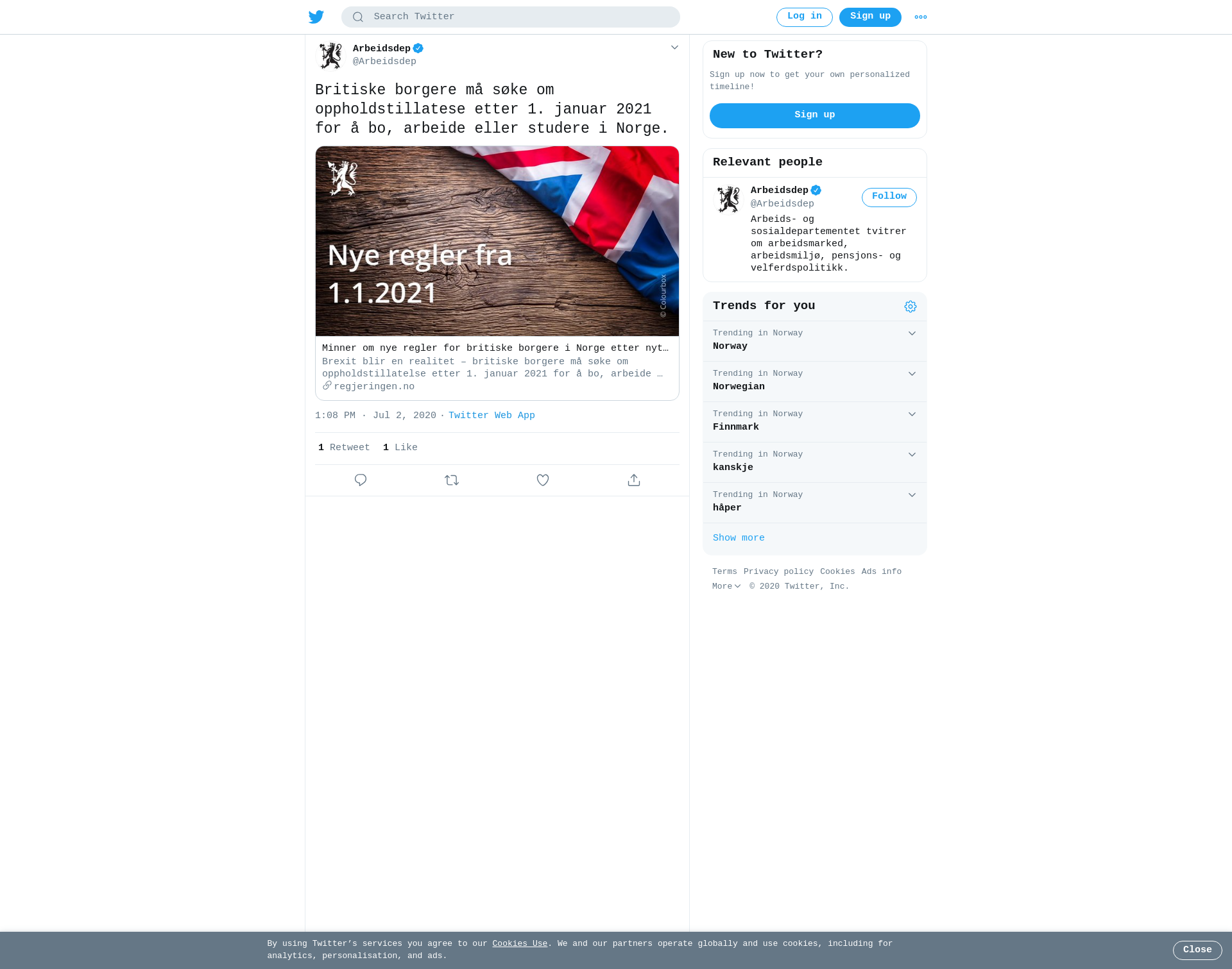Britiske borgere må søke om oppholdstillatese etter 1. januar 2021 for å bo, arbeide eller studere i Norge. https://t.co/0aTbTphuJI