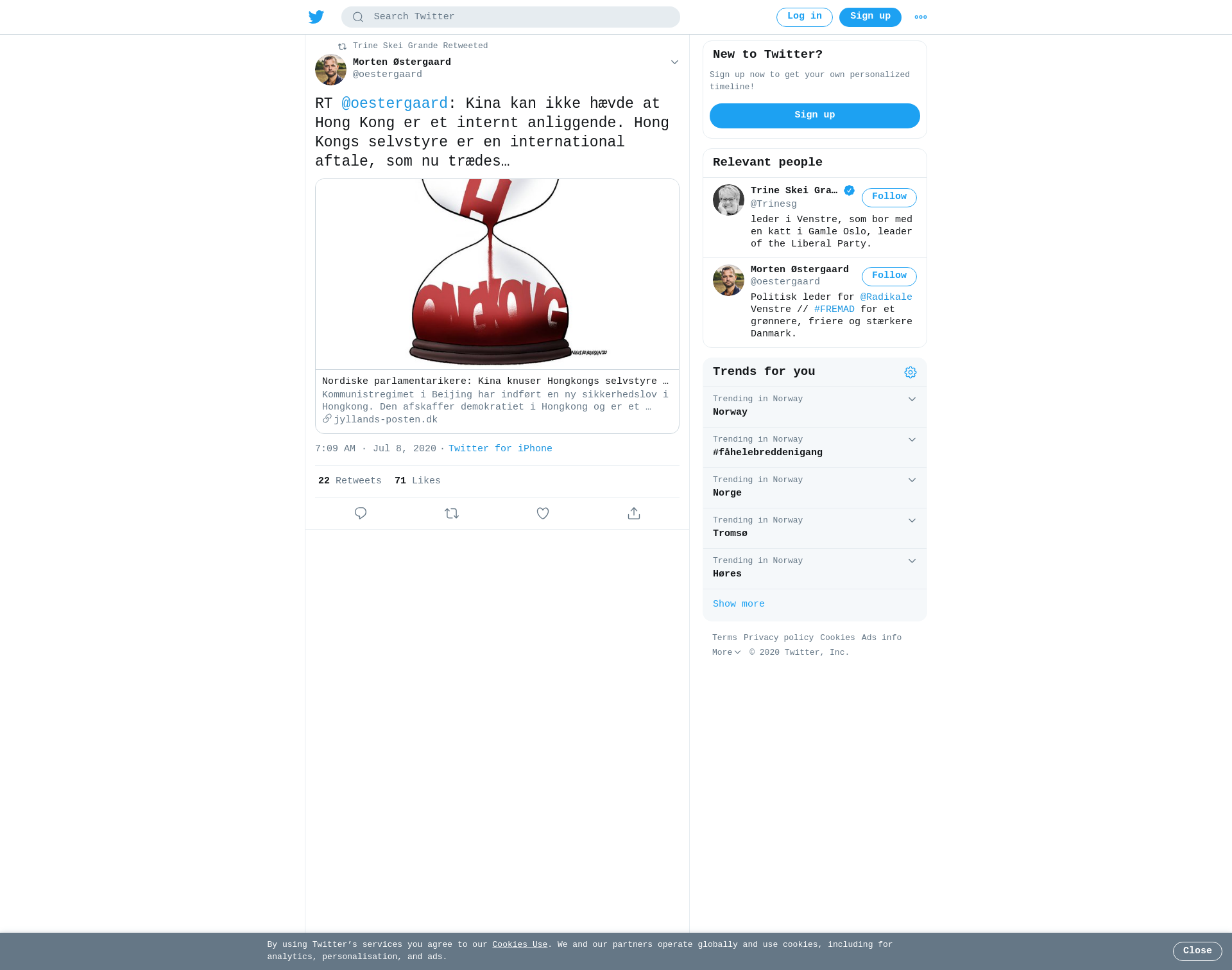 RT @oestergaard: Kina kan ikke hævde at Hong Kong er et internt anliggende. Hong Kongs selvstyre er en international aftale, som nu trædes under fode. Det kan der ikke advares nok imod - gør jeg her med Norges @Venstre og svenske