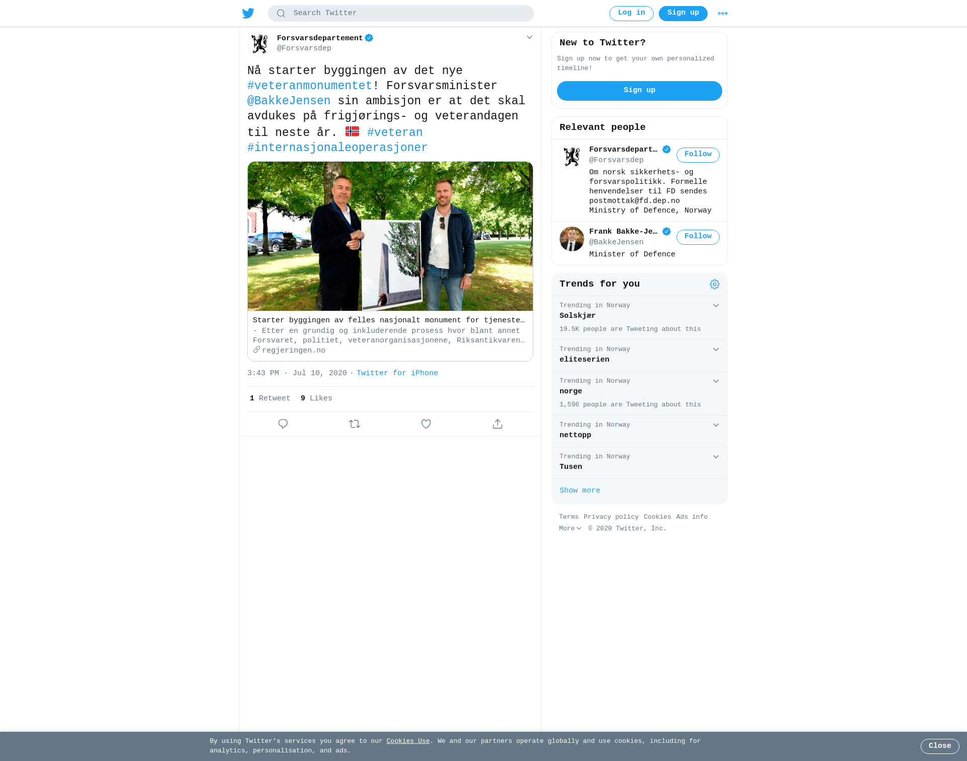 - Etter en grundig og inkluderende prosess hvor blant annet Forsvaret, politiet, veteranorganisasjonene, Riksantikvaren og Byantikvaren har vært involvert, er jeg svært tilfreds med at vi endelig kan starte byggingen av et felles nasjonalt monument til...