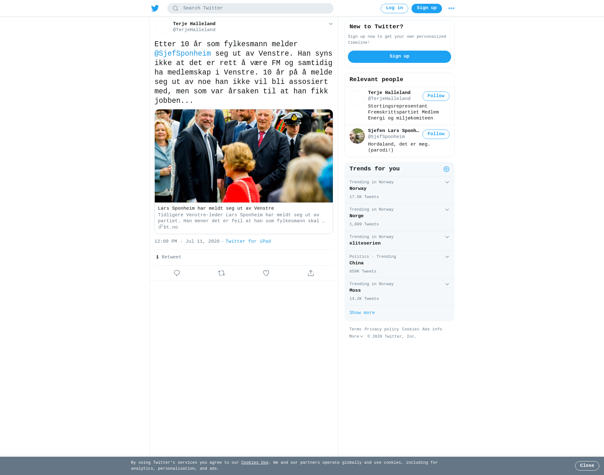 Etter 10 år som fylkesmann melder @SjefSponheim seg ut av Venstre. Han syns ikke at det er rett å være FM og samtidig ha medlemskap i Venstre. 10 år på å melde seg ut av noe han ikke vil bli assosiert med, men som var årsaken til at han fikk jobben...
