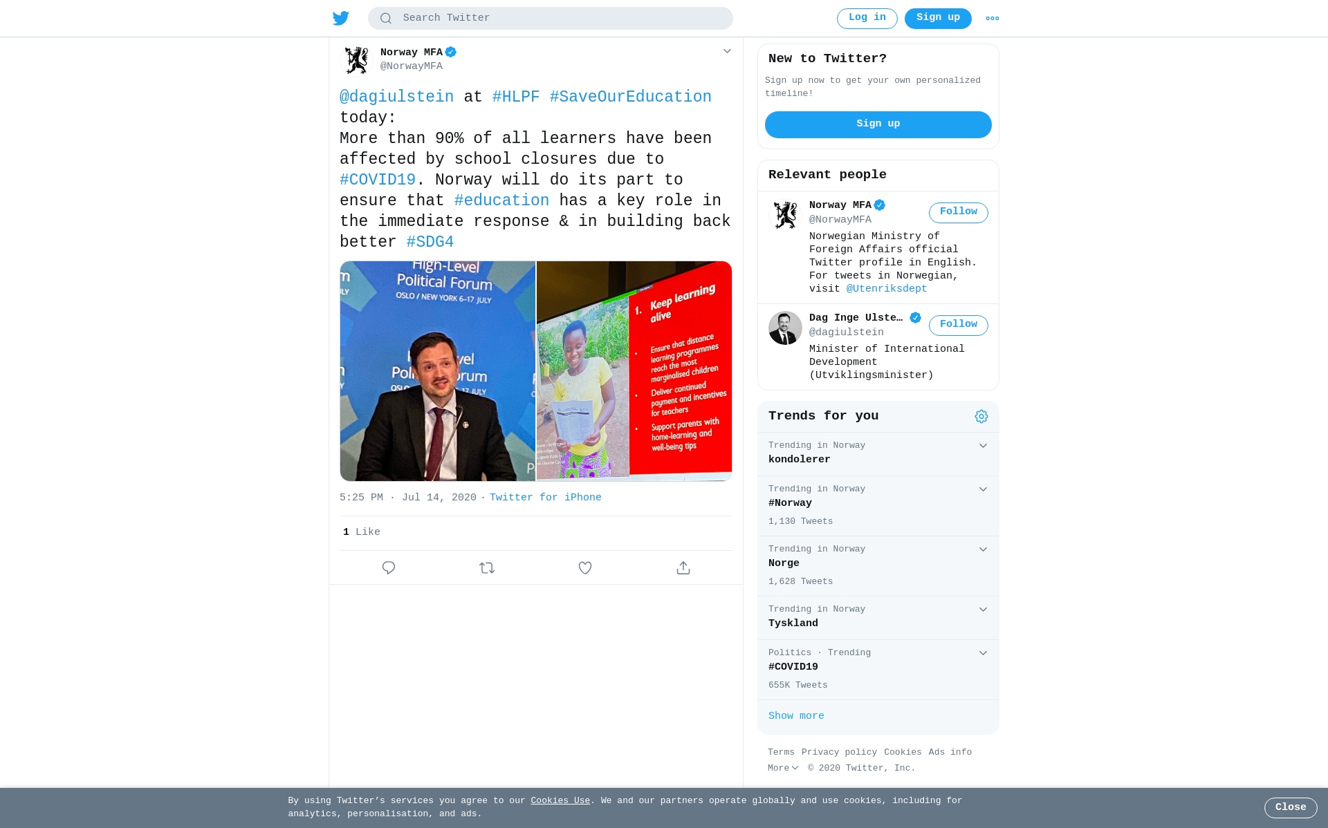 More than 90% of all learners have been affected by school closures due to #COVID19. Norway will do its part to ensure that #education has a key role in the immediate response & in building back better #SDG4 https://t.co/VO6W9LBoSG