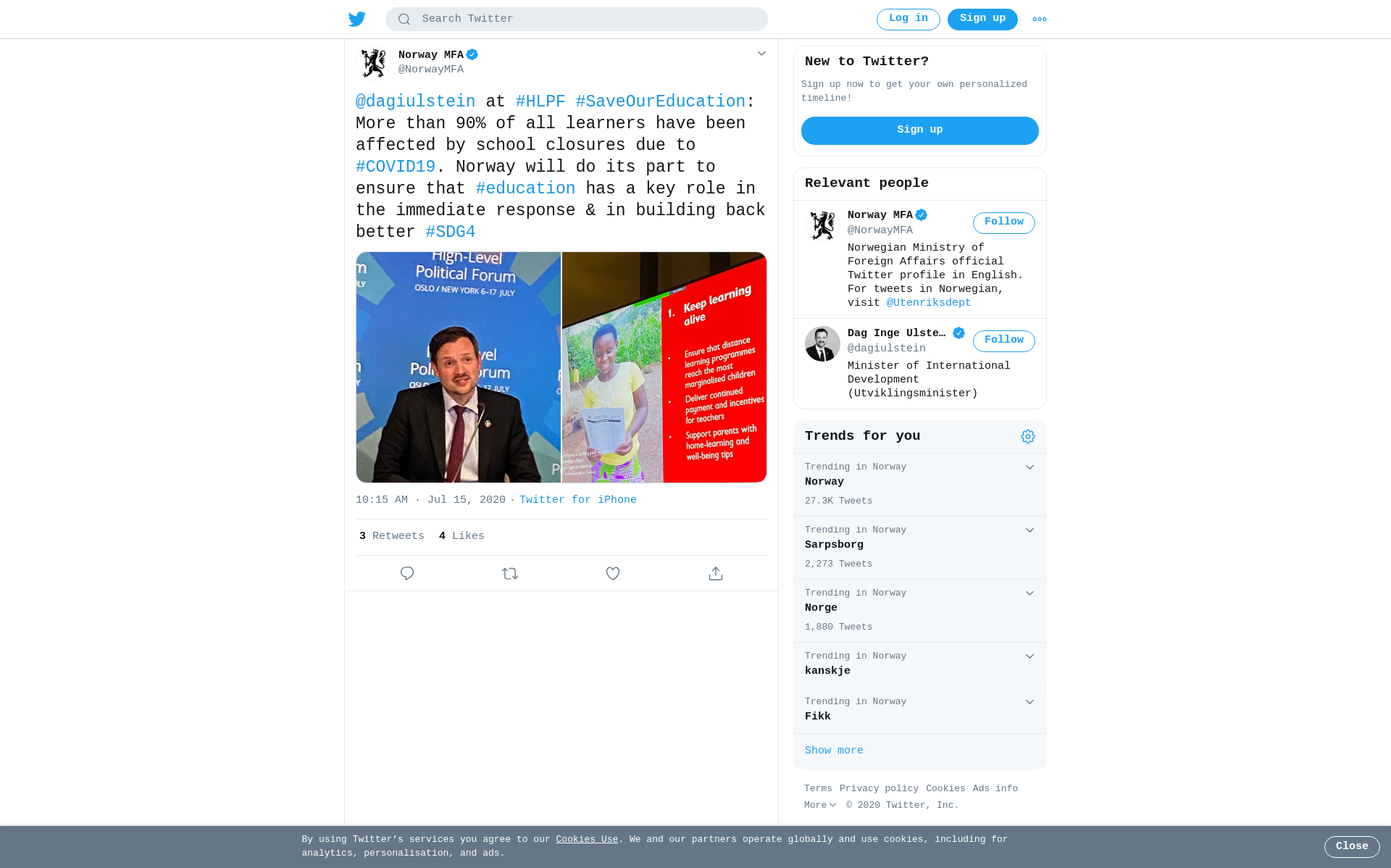 More than 90% of all learners have been affected by school closures due to #COVID19. Norway will do its part to ensure that #education has a key role in the immediate response & in building back better #SDG4 https://t.co/hM6qp8aioi