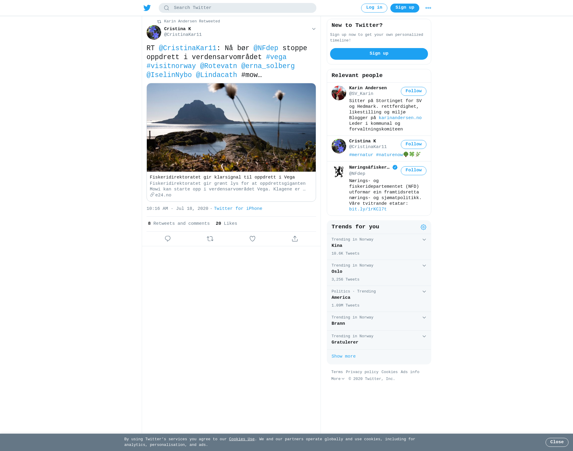 RT @CristinaKar11: Nå bør @NFdep stoppe oppdrett i verdensarvområdet #vega #visitnorway @Rotevatn @erna_solberg @IselinNybo @Lindacath #mowi https://t.co/5jryQ5Mm1u