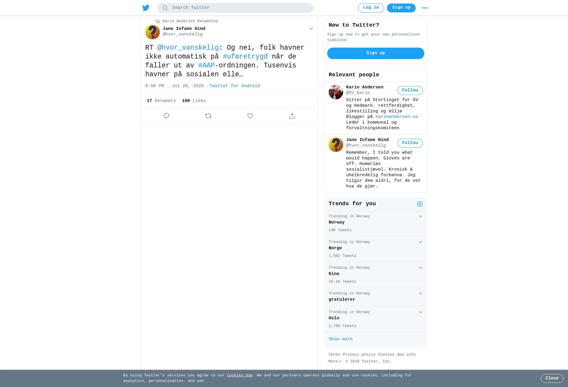 RT @hvor_vanskelig: Og nei, folk havner ikke automatisk på #uføretrygd når de faller ut av #AAP-ordningen. Tusenvis havner på sosialen eller i privat forsørging. Og folk blir ikke arbeidsføre av å bli enda fattigere.