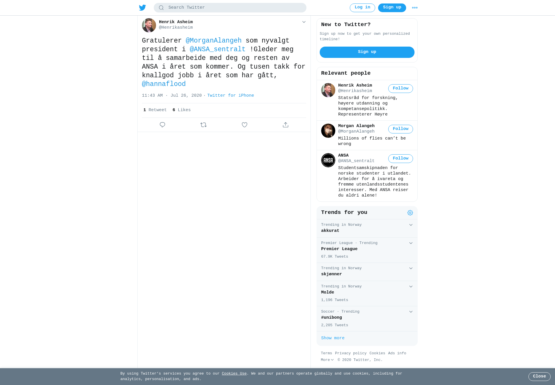 Gratulerer @MorganAlangeh som nyvalgt president i @ANSA_sentralt !Gleder meg til å samarbeide med deg og resten av ANSA i året som kommer. Og tusen takk for knallgod jobb i året som har gått, @hannaflood