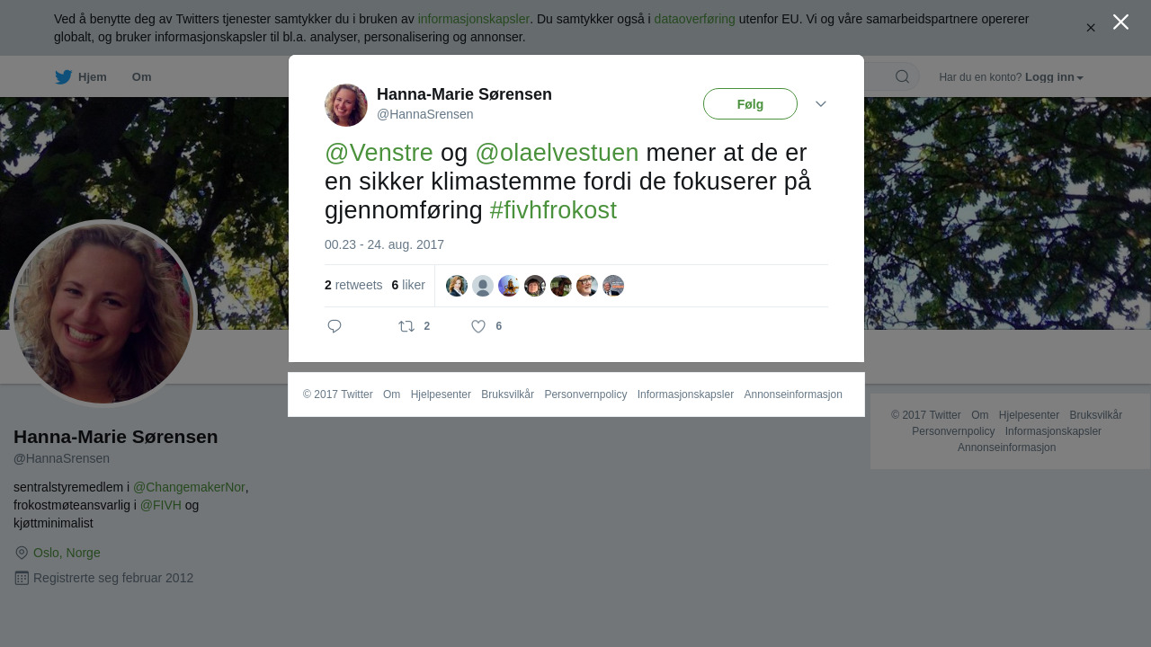 RT @HannaSrensen: @Venstre og @olaelvestuen mener at de er en sikker klimastemme fordi de fokuserer på gjennomføring #fivhfrokost