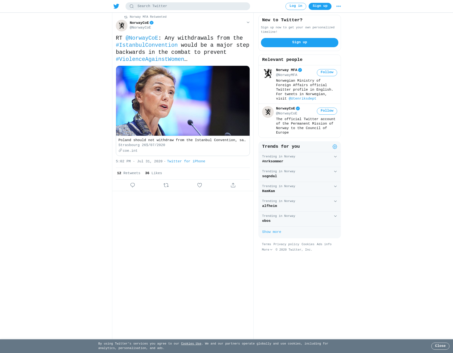 RT @NorwayCoE: Any withdrawals from the #IstanbulConvention would be a major step backwards in the combat to prevent #ViolenceAgainstWomen and #DomesticViolence. We strongly support the statement of @CoE SG https://t.co/FaaVFkRmza