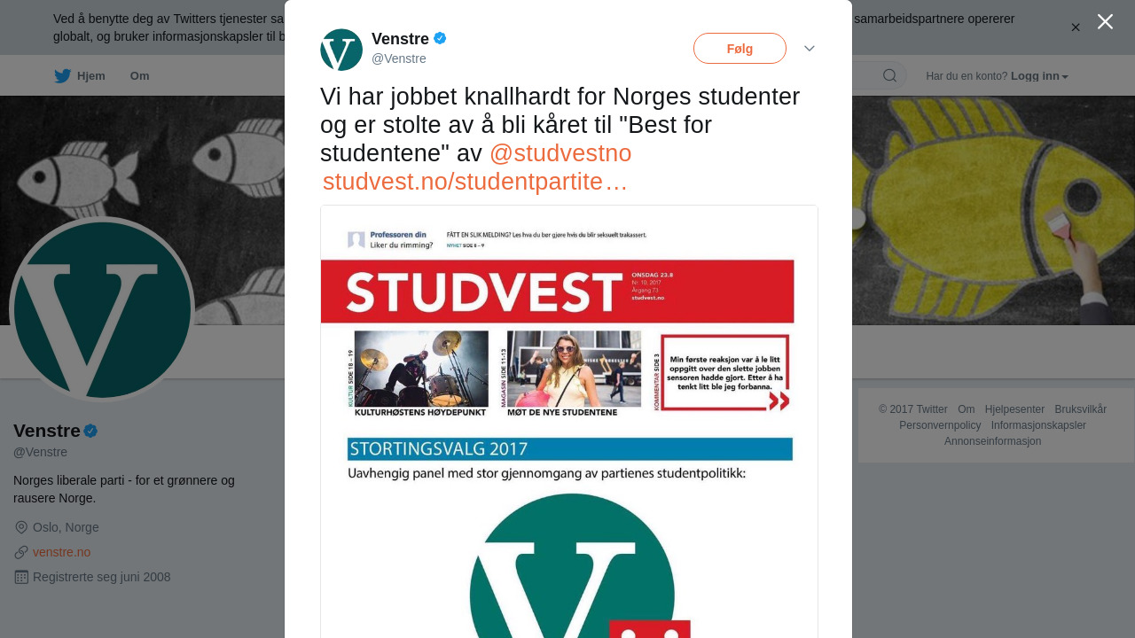 RT @Venstre: Vi har jobbet knallhardt for Norges studenter og er stolte av å bli kåret til "Best for studentene" av @studvestno… https://t.co/sEqTKsLptP