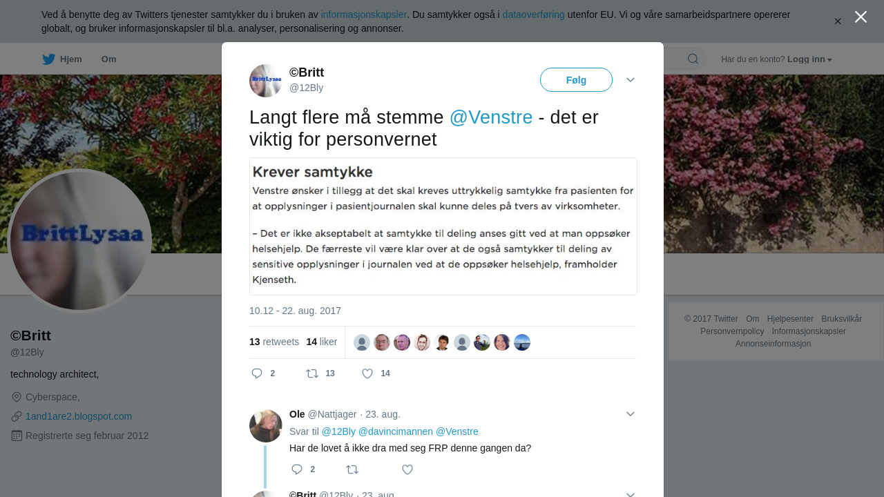 RT @12Bly: Langt flere må stemme @Venstre - det er viktig for personvernet https://t.co/q52s9DJT27