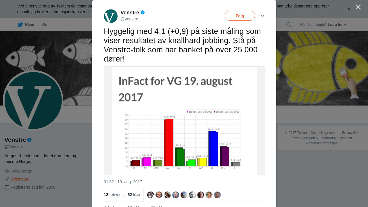RT @Venstre: Hyggelig med 4,1 (+0,9) på siste måling som viser resultatet av knallhard jobbing. Stå på Venstre-folk som har bank… https://t.co/wwp4Necn5P