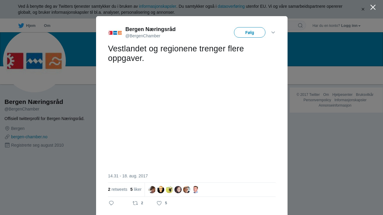 RT @BergenChamber: Vestlandet og regionene trenger flere oppgaver. https://t.co/k4zIgeXBWG