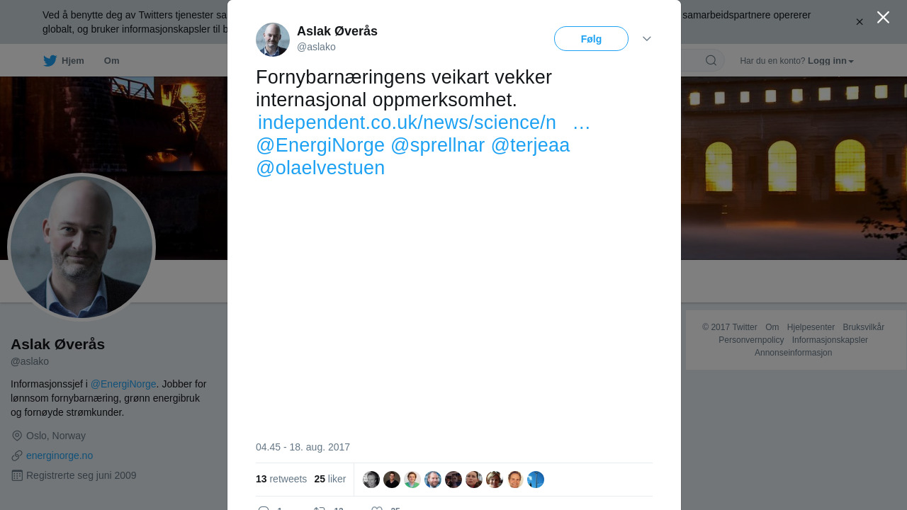 Norway can become the world’s first fully electric-powered country with a concerted push for sustainability, according to an energy think tank. Energi Norge, a industry advisory body, set out its green energy programme and said it was possible for the country to operate entirely using clean electricity by 2050. Hydro power is currently the source of over 96 per cent of Norway’s electricity and there are more than 110,000 electric cars in use in the country.