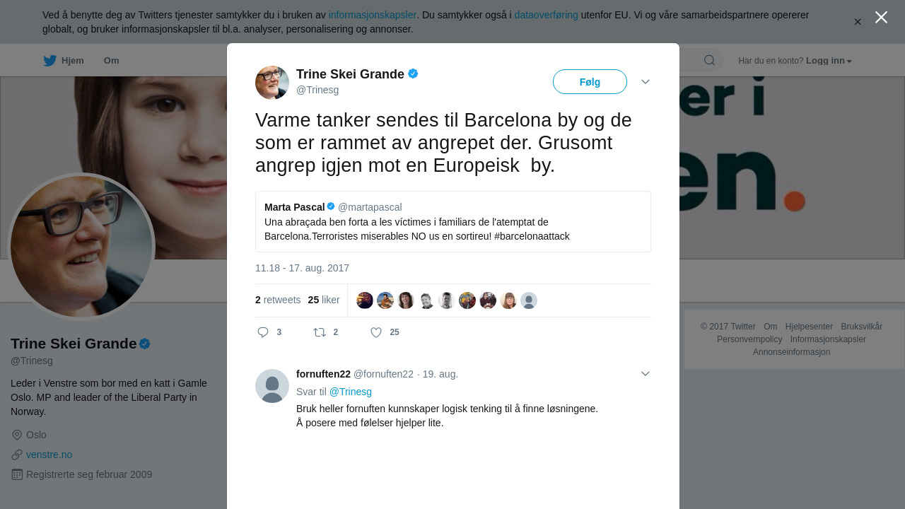 Varme tanker sendes til Barcelona by og de som er rammet av angrepet der. Grusomt angrep igjen mot en Europeisk by. https://t.co/4FV3KRcBya
