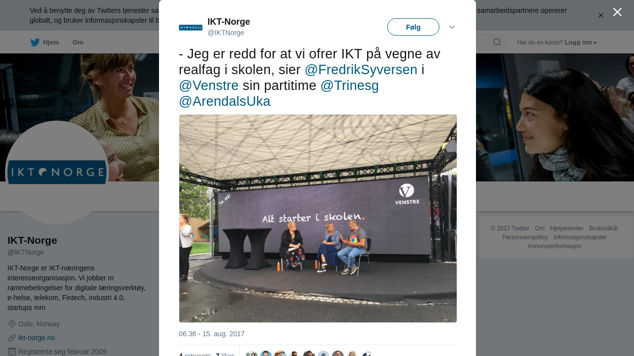 RT @IKTNorge: - Jeg er redd for at vi ofrer IKT på vegne av realfag i skolen, sier @FredrikSyversen i @Venstre sin partitime… https://t.co/naZt5C1tzC