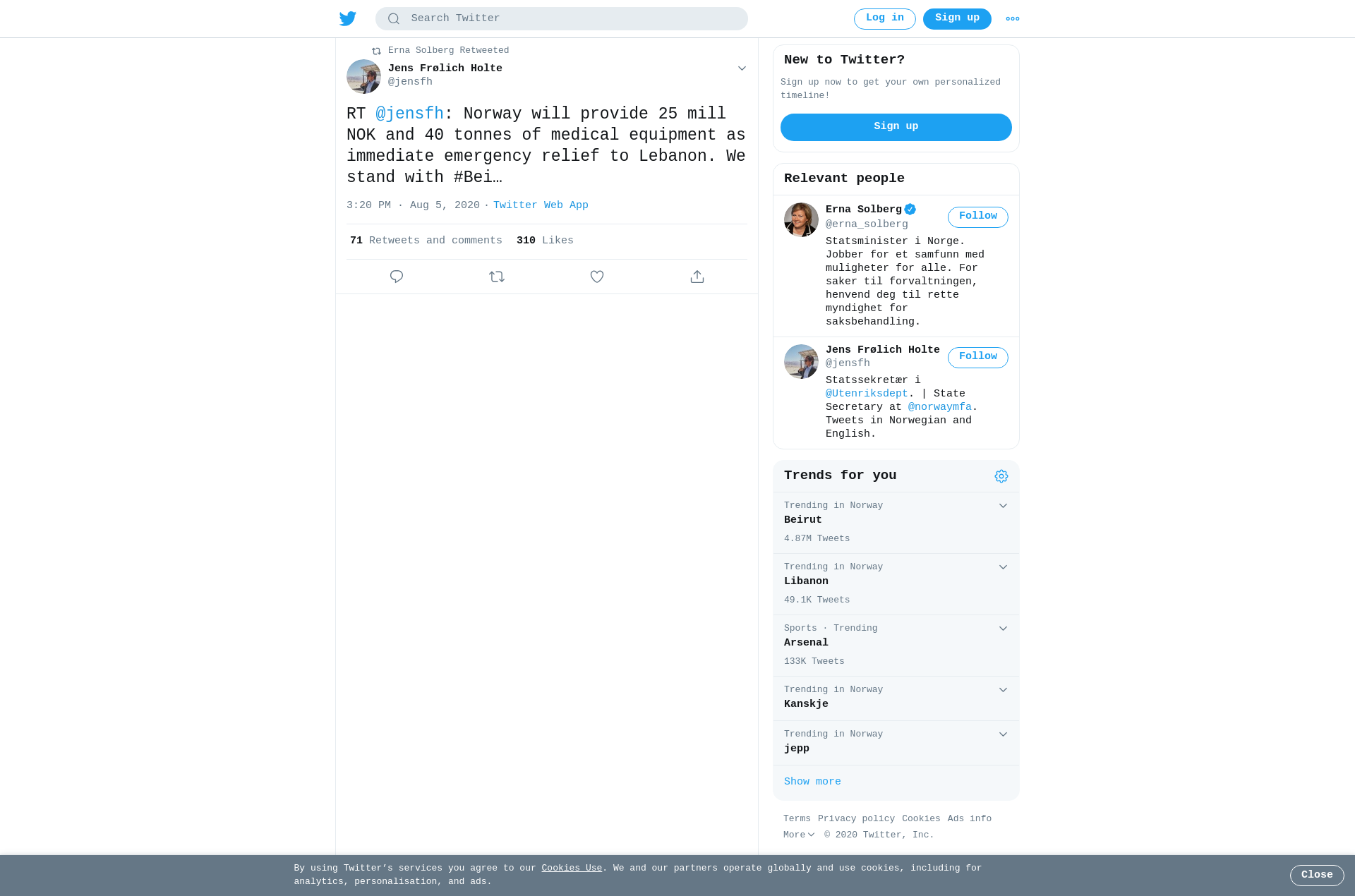 RT @jensfh: Norway will provide 25 mill NOK and 40 tonnes of medical equipment as immediate emergency relief to Lebanon. We stand with #Beirut and #Lebanon in this difficult time. @NorwayMFA @NorwayinLebanon