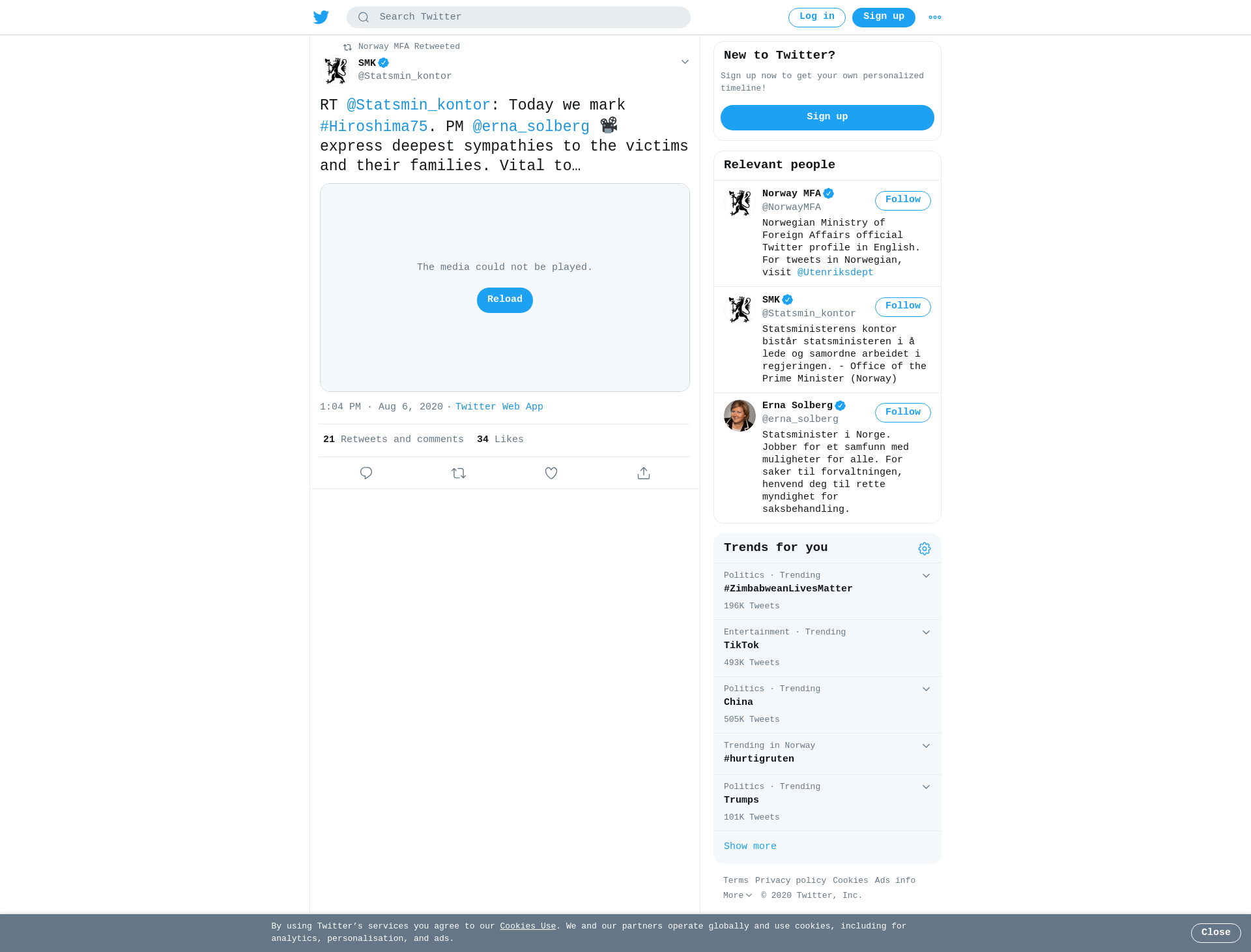 RT @Statsmin_kontor: Today we mark #Hiroshima75. PM @erna_solberg 📽 express deepest sympathies to the victims and their families. Vital to ensure continued global commitment to the Treaty on the Non-Proliferation of Nuclear Weapons #NPT https://t.co/ZeVah6UzUX