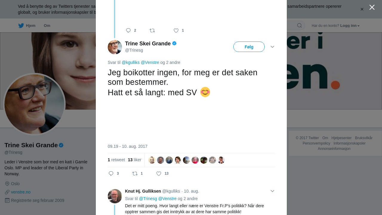 @kgulliks @Venstre @frp_no @KAHareide Jeg boikotter ingen, for meg er det saken som bestemmer. Hatt et så langt: m… https://t.co/2Kt2fn3CGt