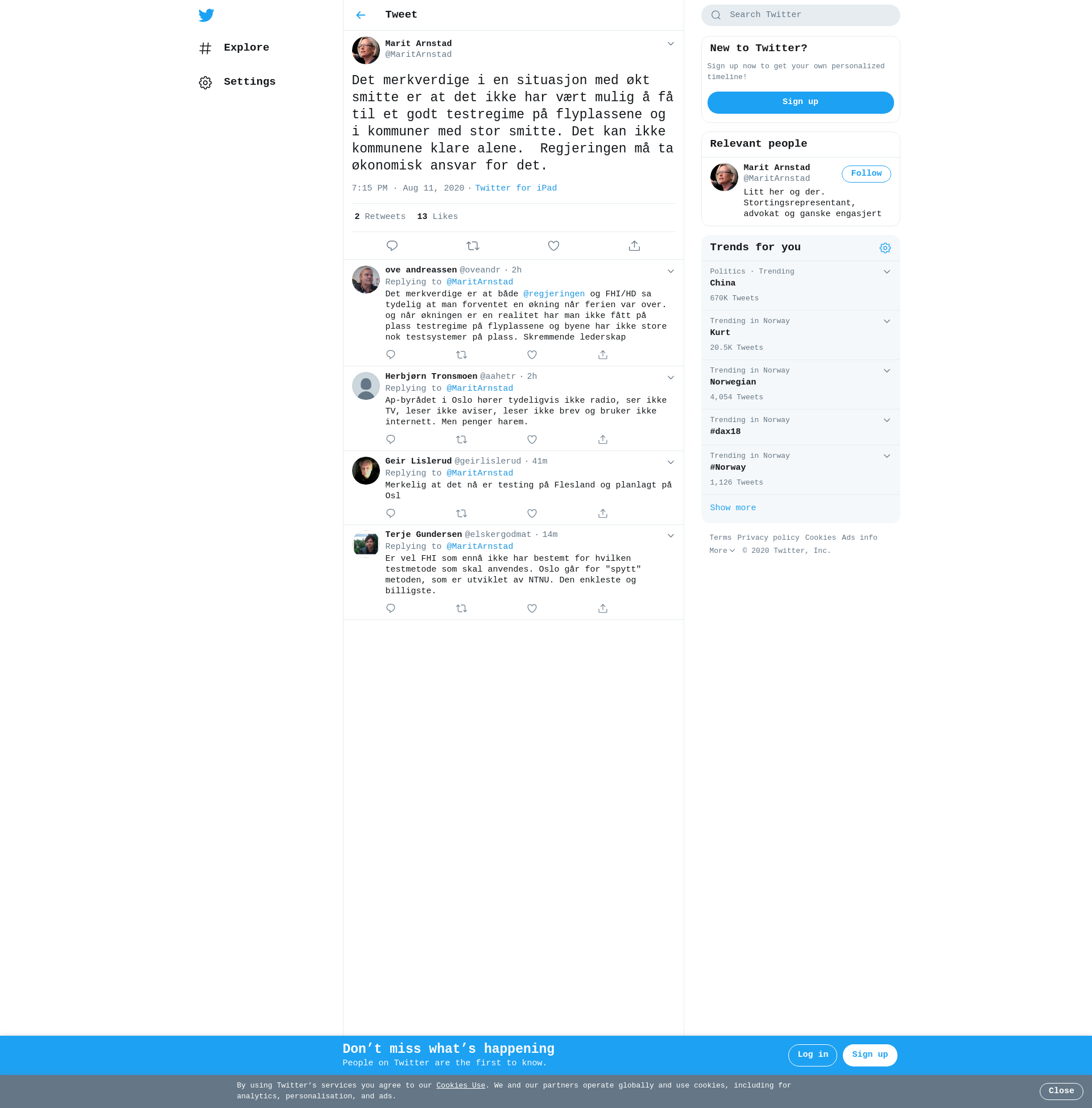 Det merkverdige i en situasjon med økt smitte er at det ikke har vært mulig å få til et godt testregime på flyplassene og i kommuner med stor smitte. Det kan ikke kommunene klare alene.  Regjeringen må ta økonomisk ansvar for det.