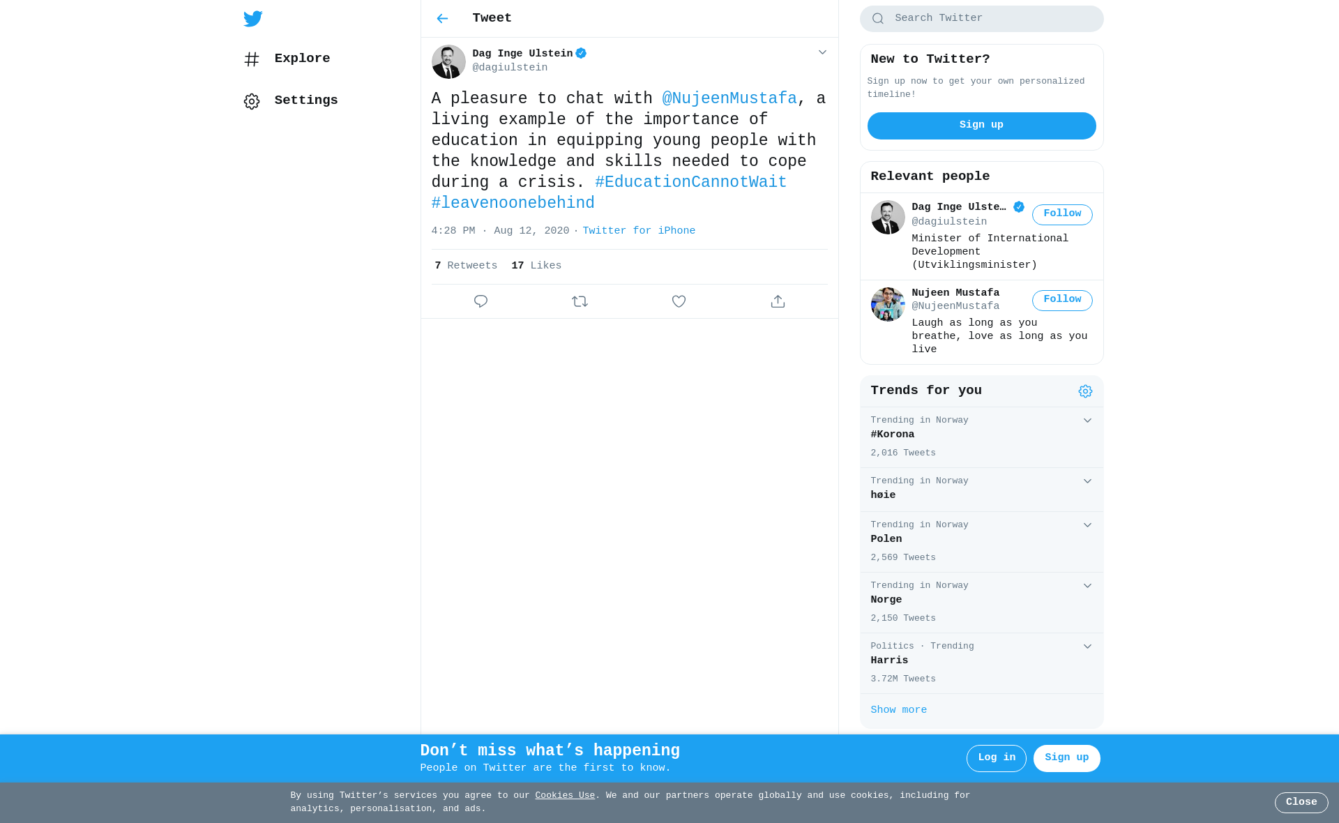 A pleasure to chat with @NujeenMustafa, a living example of the importance of education in equipping young people with the knowledge and skills needed to cope during a crisis. #EducationCannotWait #leavenoonebehind