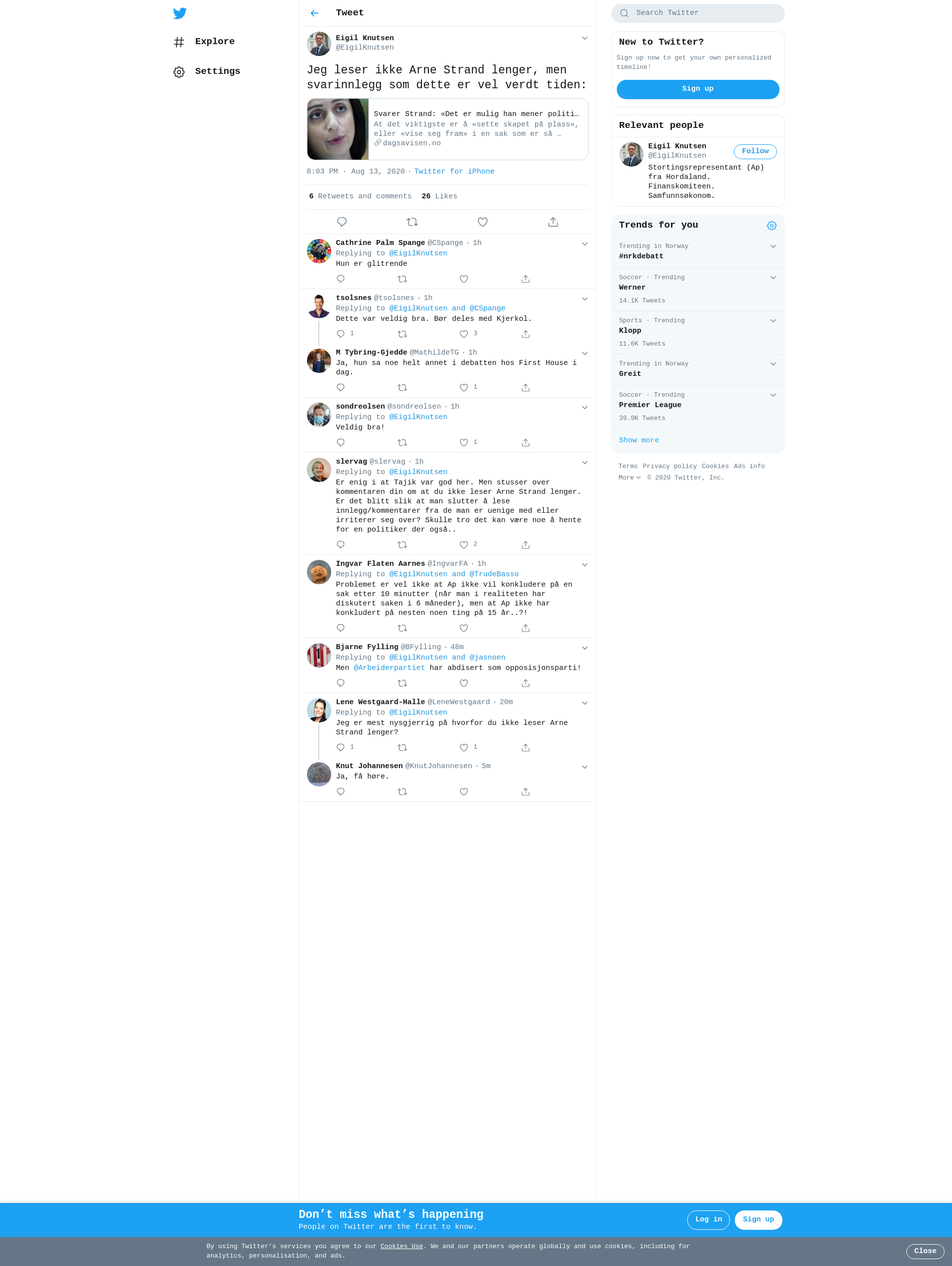 Svarer Strand: «Det er mulig han mener politikk handler om å være tøff på TV»