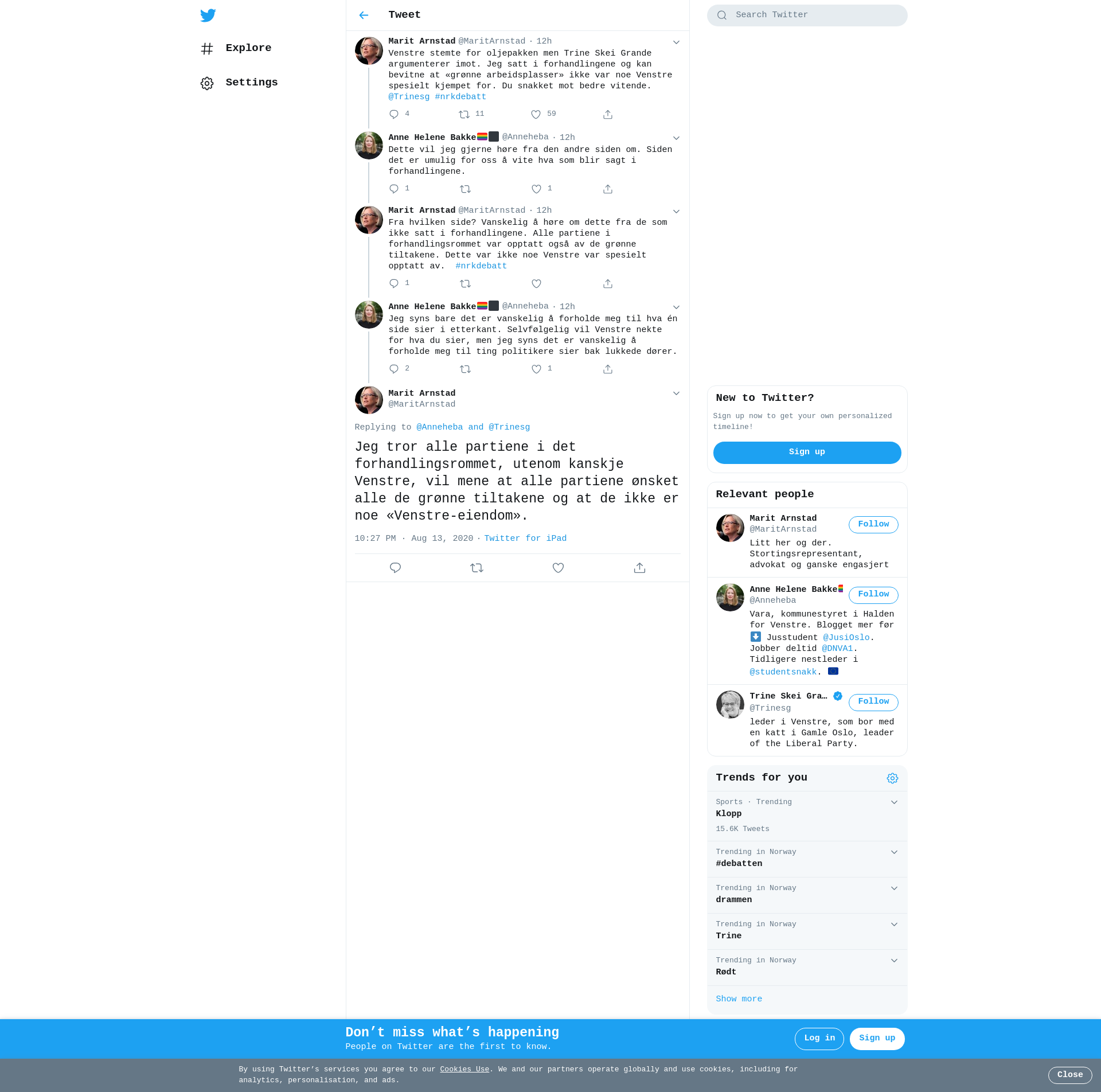 @Anneheba @Trinesg Jeg tror alle partiene i det forhandlingsrommet, utenom kanskje Venstre, vil mene at alle partiene ønsket alle de grønne tiltakene og at de ikke er noe «Venstre-eiendom».