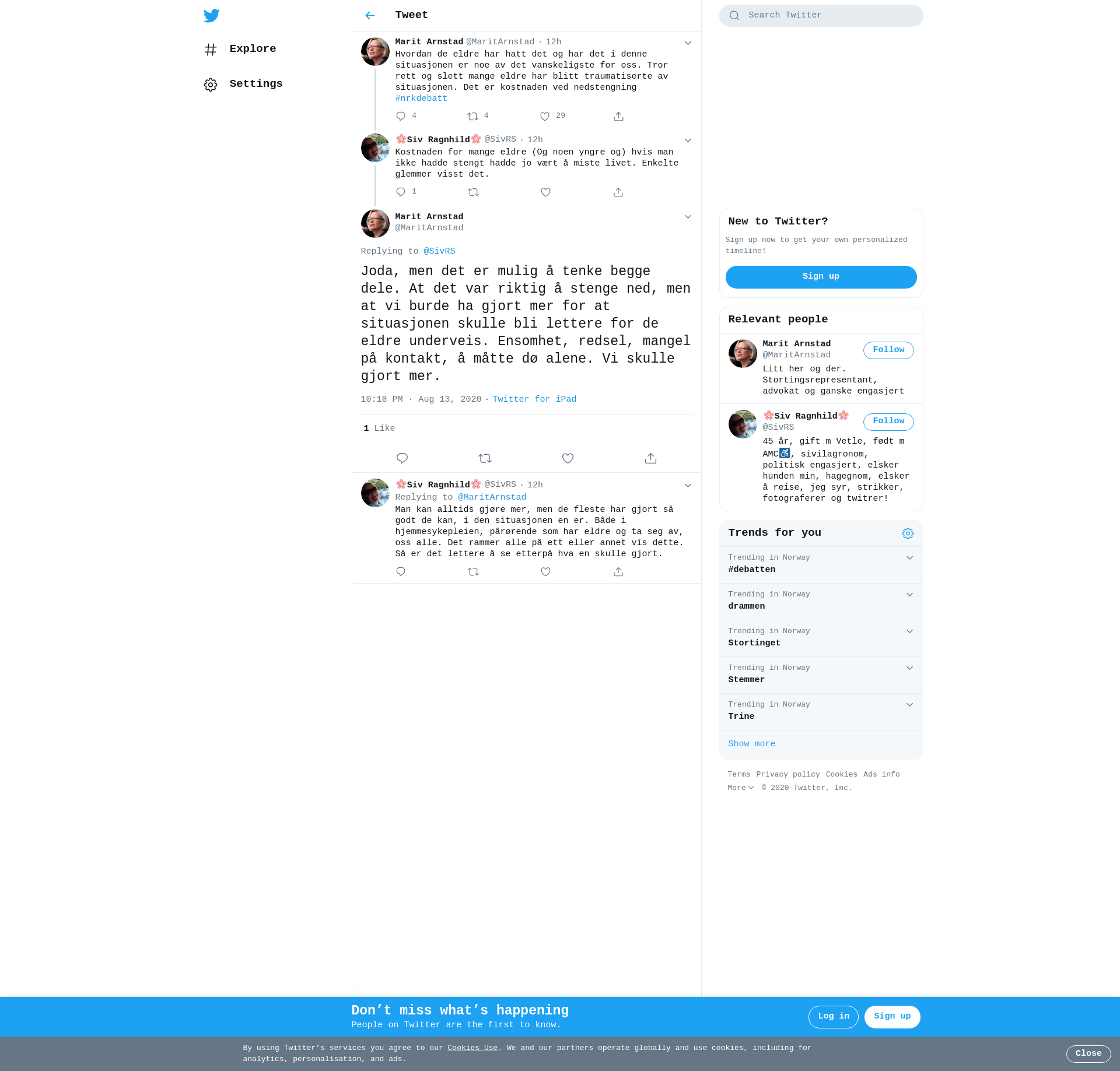 @SivRS Joda, men det er mulig å tenke begge dele. At det var riktig å stenge ned, men at vi burde ha gjort mer for at situasjonen skulle bli lettere for de eldre underveis. Ensomhet, redsel, mangel på kontakt, å måtte dø alene. Vi skulle gjort mer.
