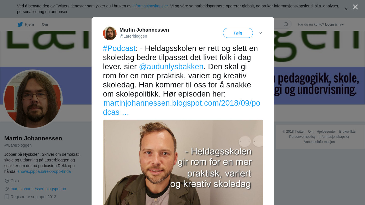 RT @Larerbloggen: #Podcast: - Heldagsskolen er rett og slett en skoledag bedre tilpasset det livet folk i dag lever, sier @audunlysbakken. Den skal gi rom for en mer praktisk, variert og kreativ skoledag. Han kommer til oss for å snakke om skolepolitikk. Hør episoden her: