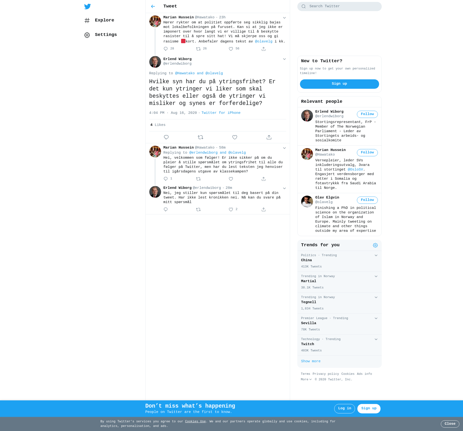 @Hawatako @olavelg Hvilke syn har du på ytringsfrihet? Er det kun ytringer vi liker som skal beskyttes eller også de ytringer vi misliker og synes er forferdelige?