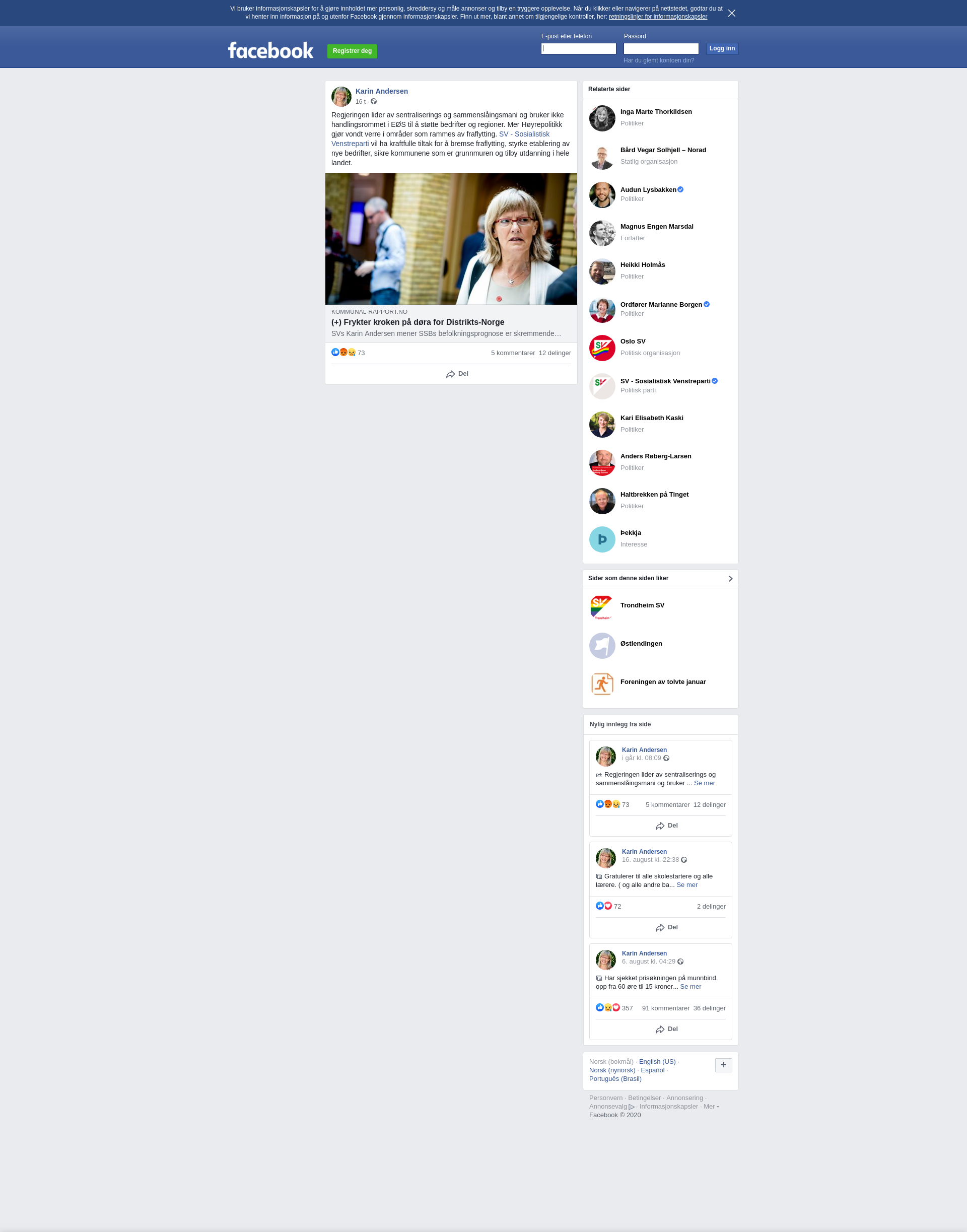SVs Karin Andersen mener SSBs befolkningsprognose er skremmende lesning og mener regjeringens politikk bare gjør vondt verre.