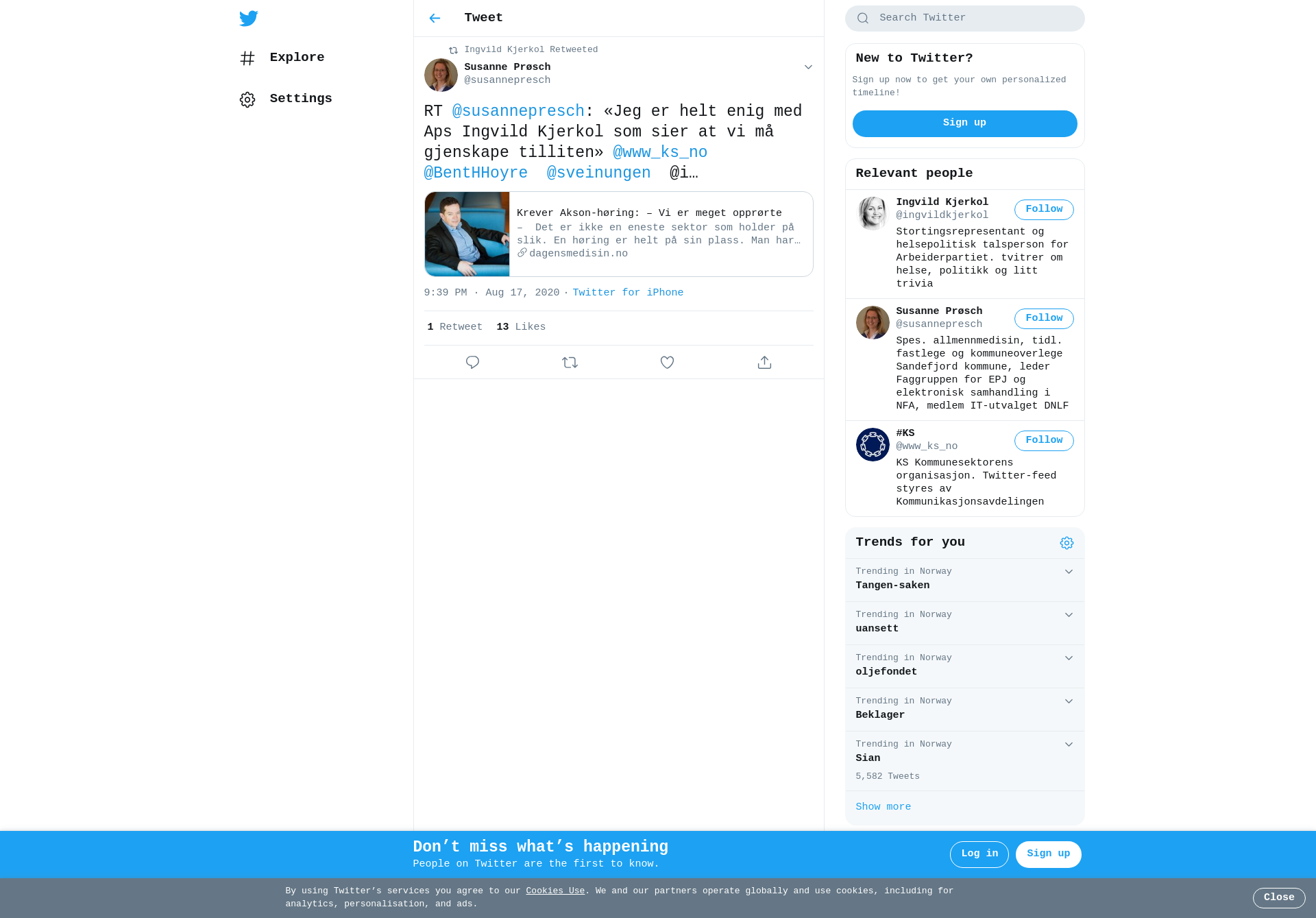 RT @susannepresch: «Jeg er helt enig med Aps Ingvild Kjerkol som sier at vi må gjenskape tilliten» @www_ks_no @BentHHoyre @sveinungen @ingvildkjerkol @DirEhelse @Aftenposten @dagsnytt18 #Akson https://t.co/yrWWGndaRN