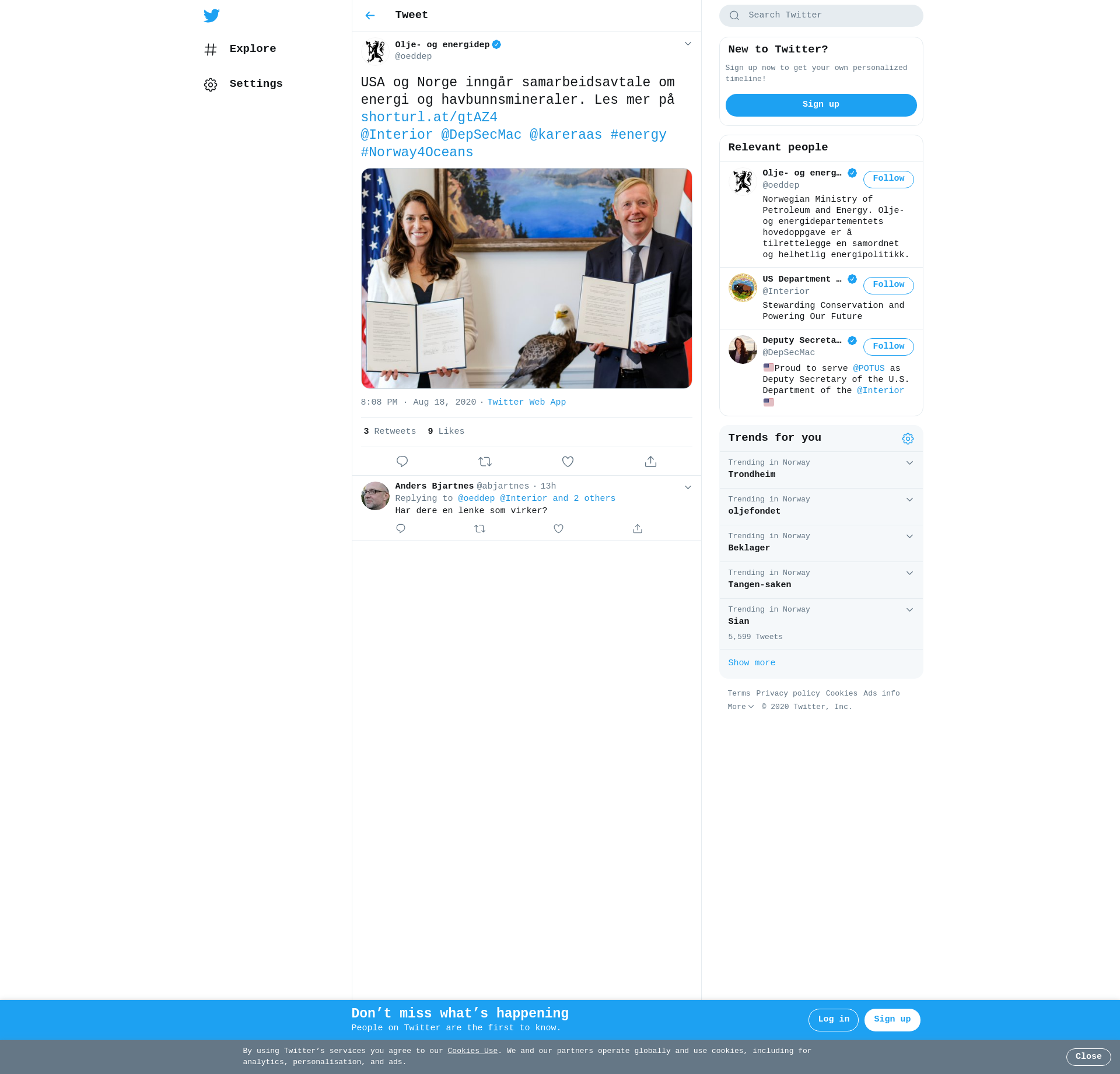 USA og Norge inngår samarbeidsavtale om energi og havbunnsmineraler. Les mer på https://t.co/08xYEgos4Z @Interior @DepSecMac @kareraas #energy #Norway4Oceans https://t.co/5NRULUgyQj