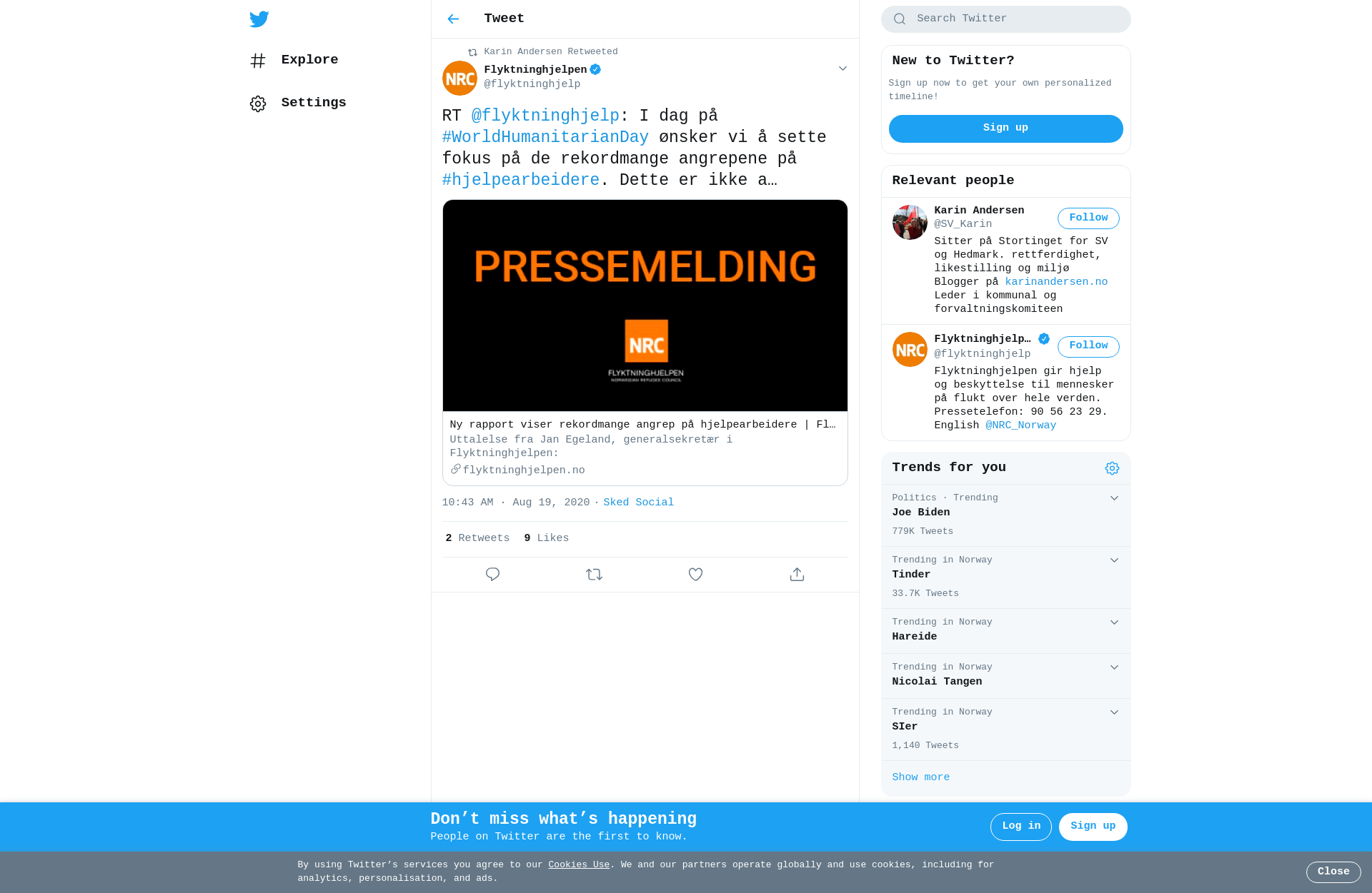 RT @flyktninghjelp: I dag på #WorldHumanitarianDay ønsker vi å sette fokus på de rekordmange angrepene på #hjelpearbeidere. Dette er ikke akseptabelt! Les uttalelsen fra @NRC_Egeland om rapporten fra @HumOutcomes her. https://t.co/Imae4upbun