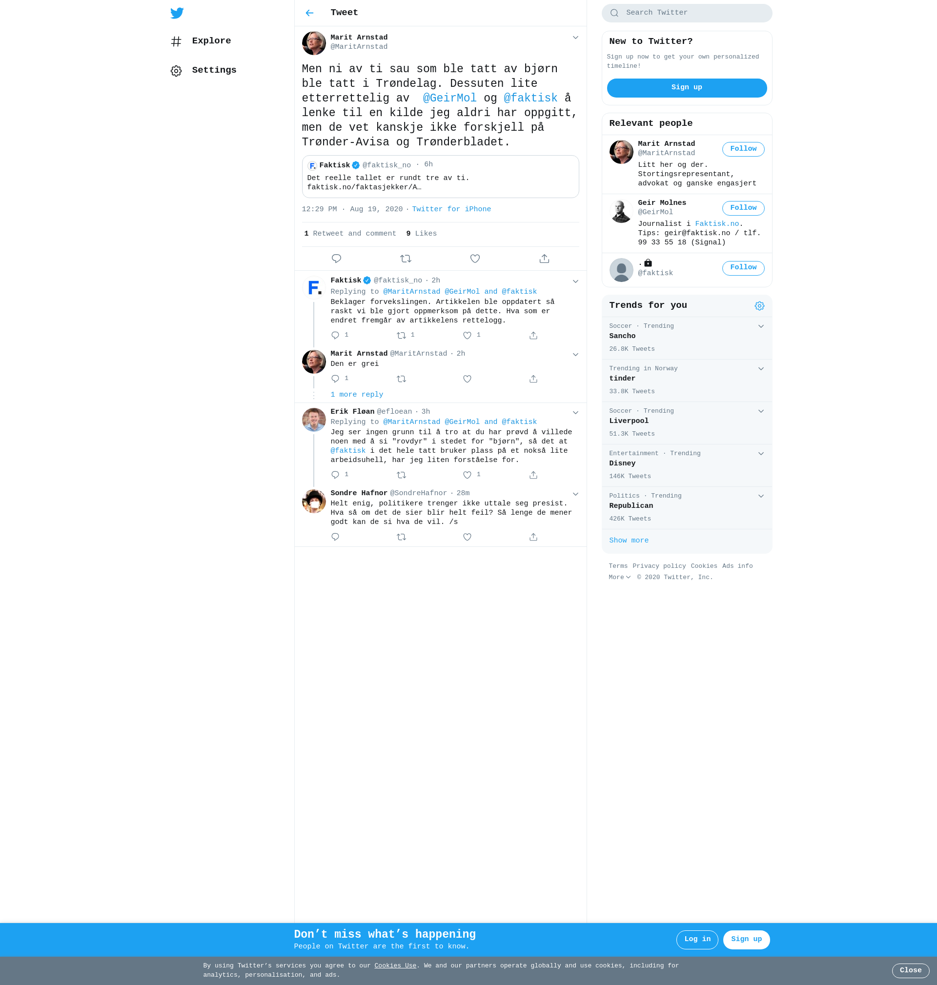 Men ni av ti sau som ble tatt av bjørn ble tatt i Trøndelag. Dessuten lite etterrettelig av @GeirMol og @faktisk å lenke til en kilde jeg aldri har oppgitt, men de vet kanskje ikke forskjell på Trønder-Avisa og Trønderbladet.