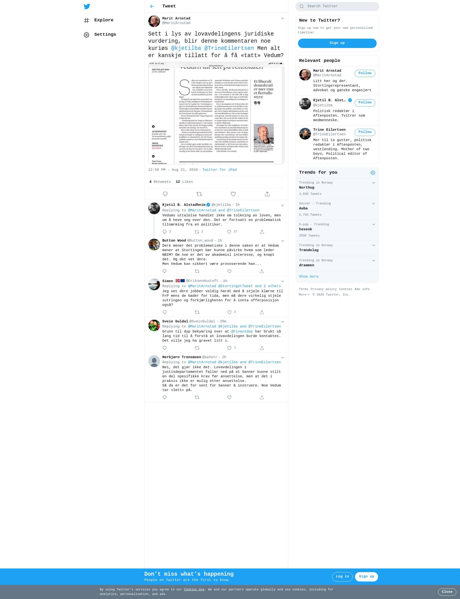 Sett i lys av lovavdelingens juridiske vurdering, blir denne kommentaren noe kuriøs @kjetilba @TrineEilertsen Men alt er kanskje tillatt for å få «tatt» Vedum? https://t.co/jm2nvBqspU