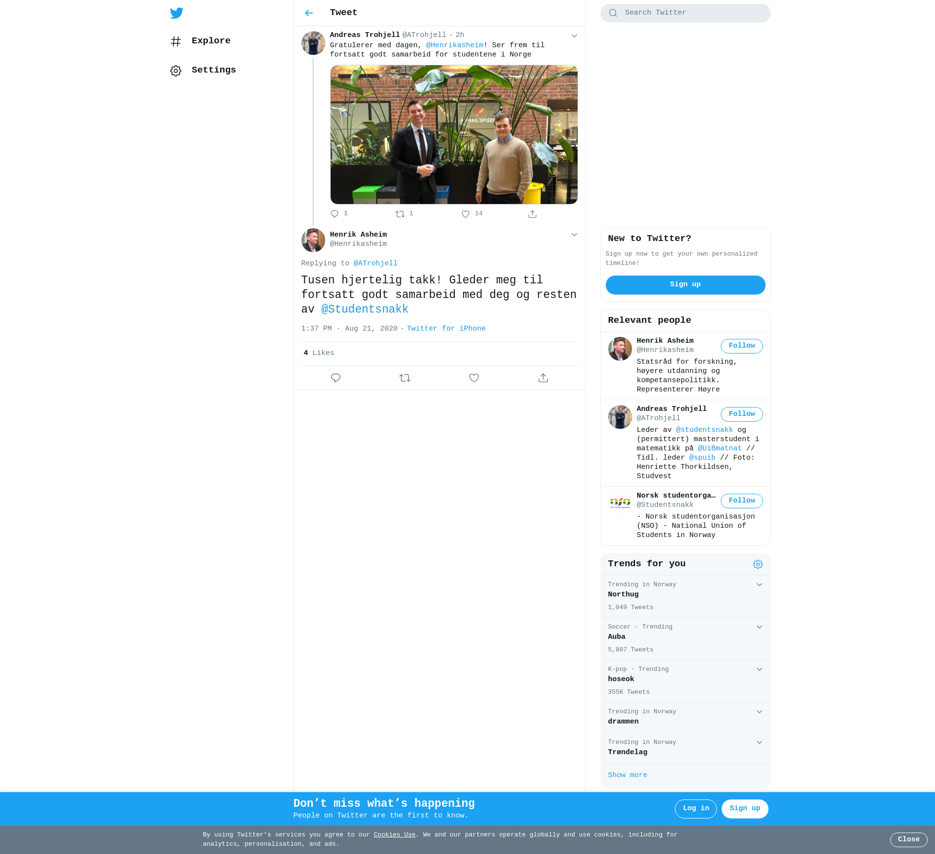 @ATrohjell Tusen hjertelig takk! Gleder meg til fortsatt godt samarbeid med deg og resten av @Studentsnakk